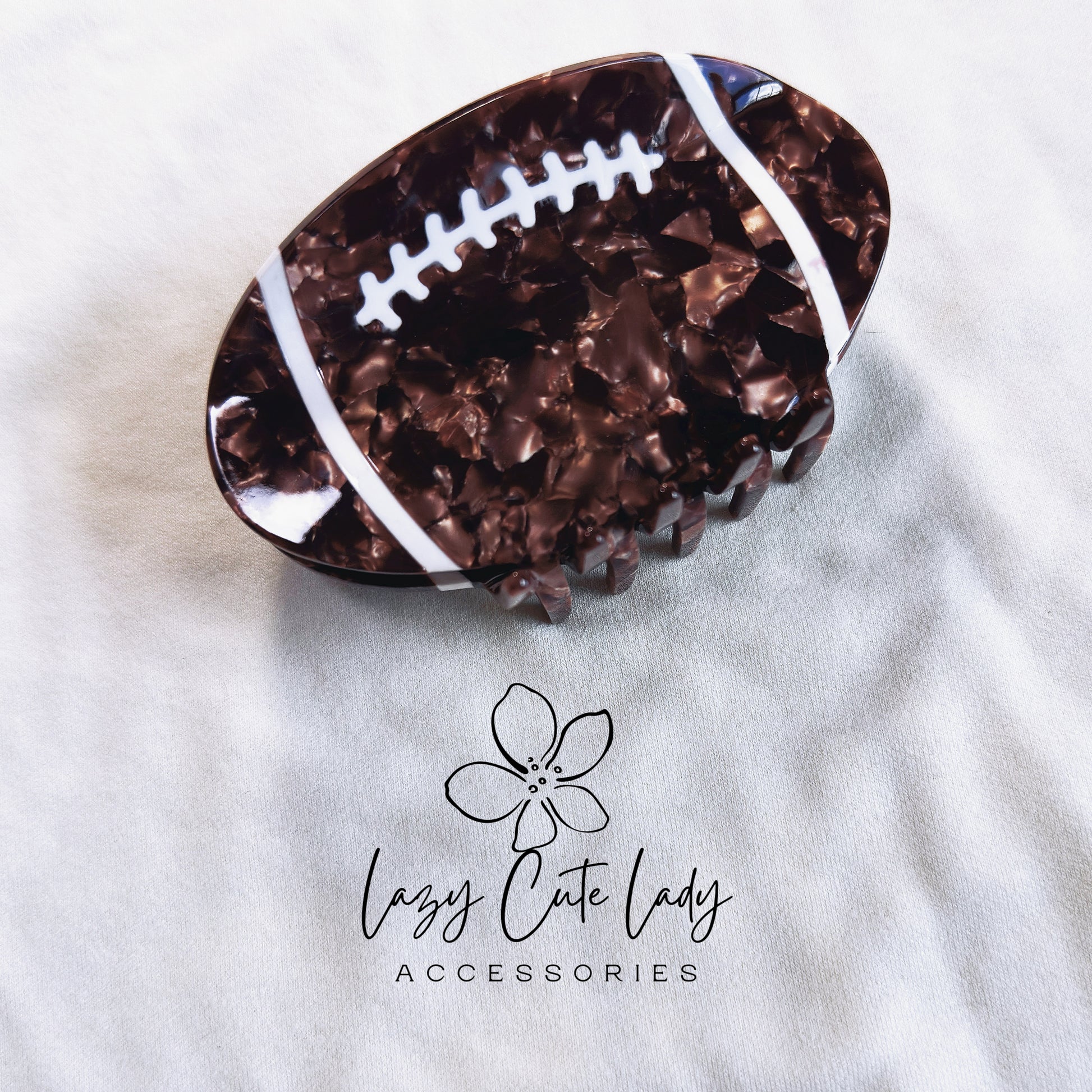 Introducing our Eco-Friendly Acetate Football Hair Claw, a fun and realistic hair accessory designed to add a playful touch to your look. Crafted from high-quality, sustainable acetate material, this hair claw features a football shape that’s both unique and eye-catching. Acetate is known for being lightweight, durable, and environmentally friendly, making it an excellent choice for those who care about sustainability. Measuring 4 inches in length, it is perfectly sized for practicality and versatility. Whether you're styling an updo or leaving your hair down, this hair claw securely holds your hair in place, making it suitable for various hairstyles. It’s easy to pair with different outfits, bringing energy and personality to your fashion ensemble.