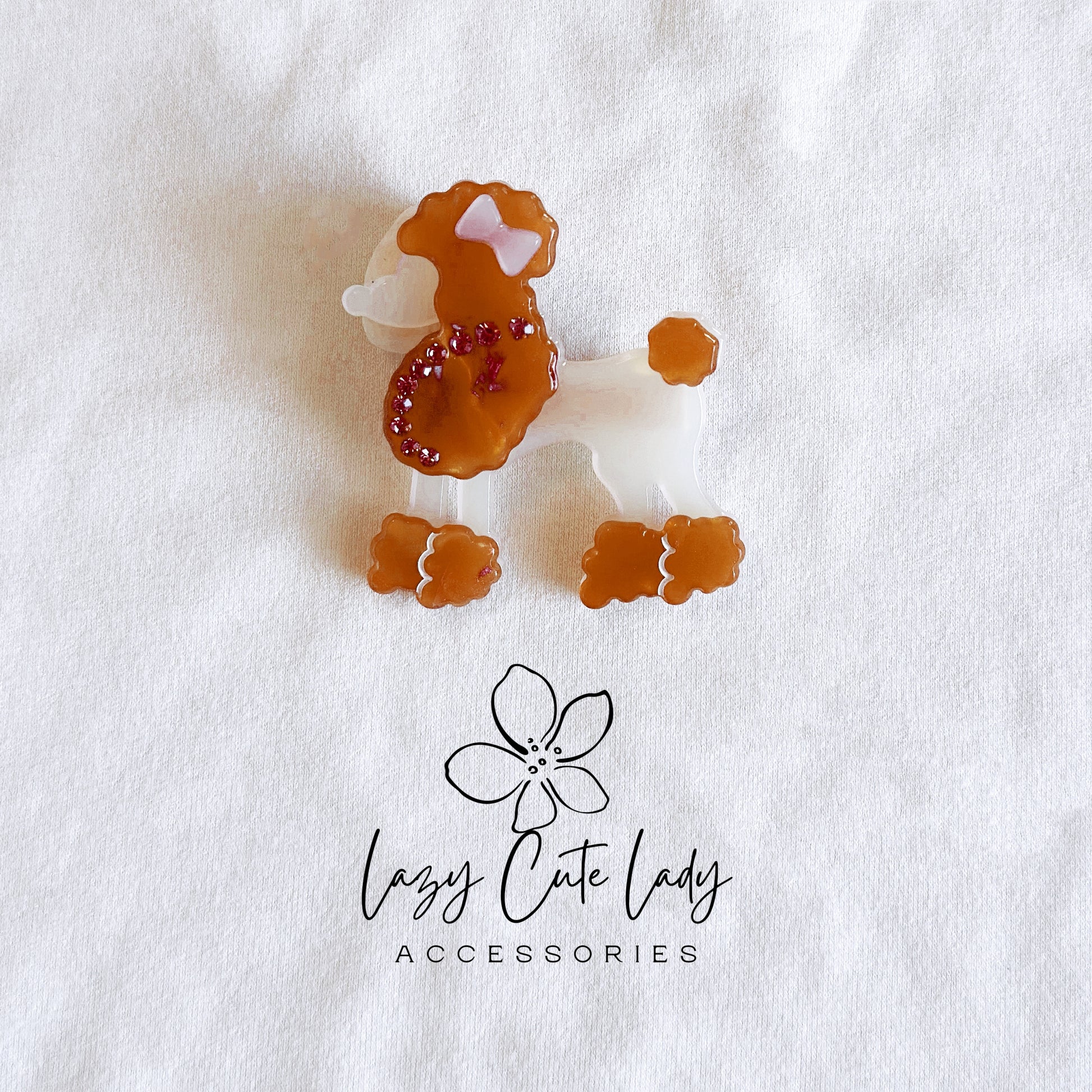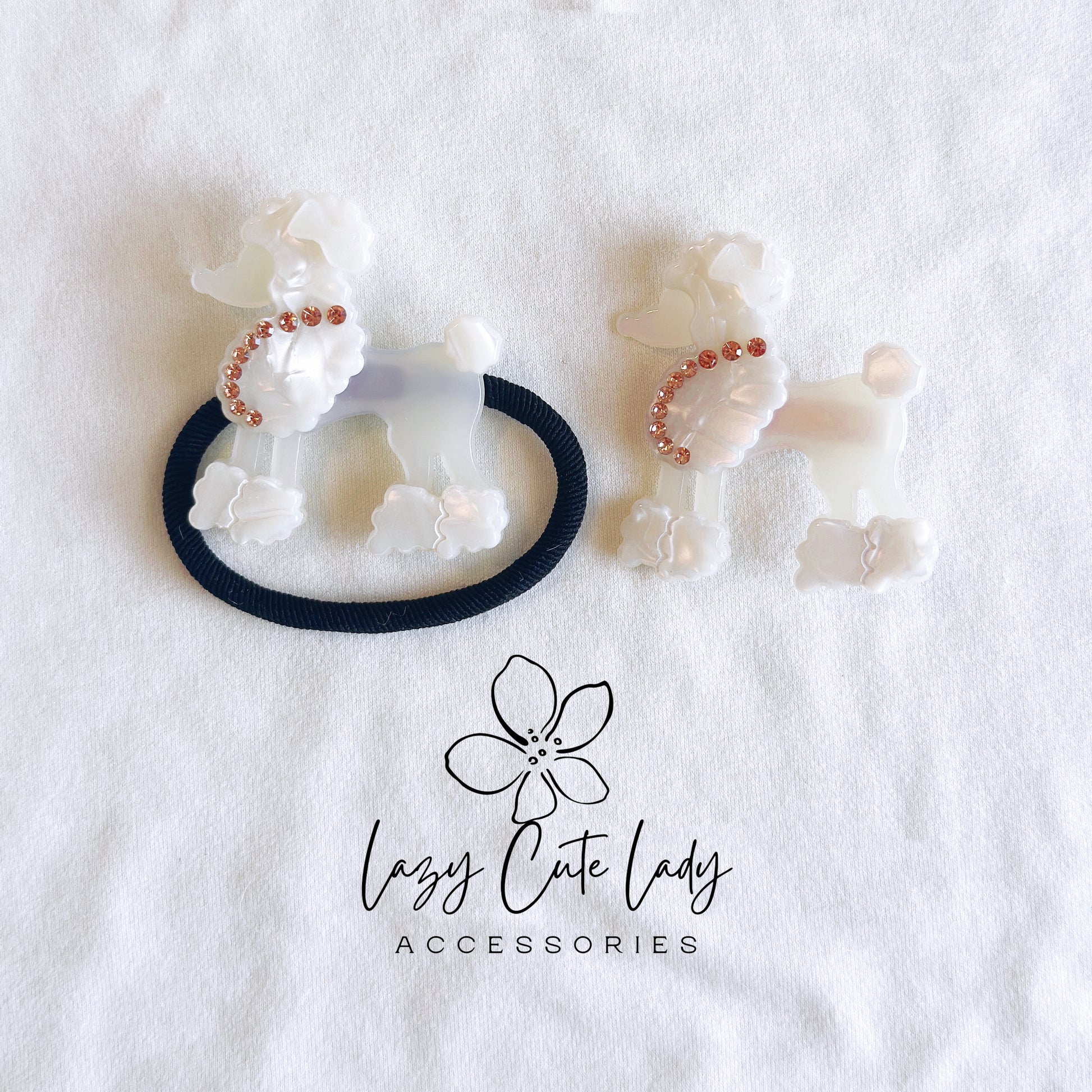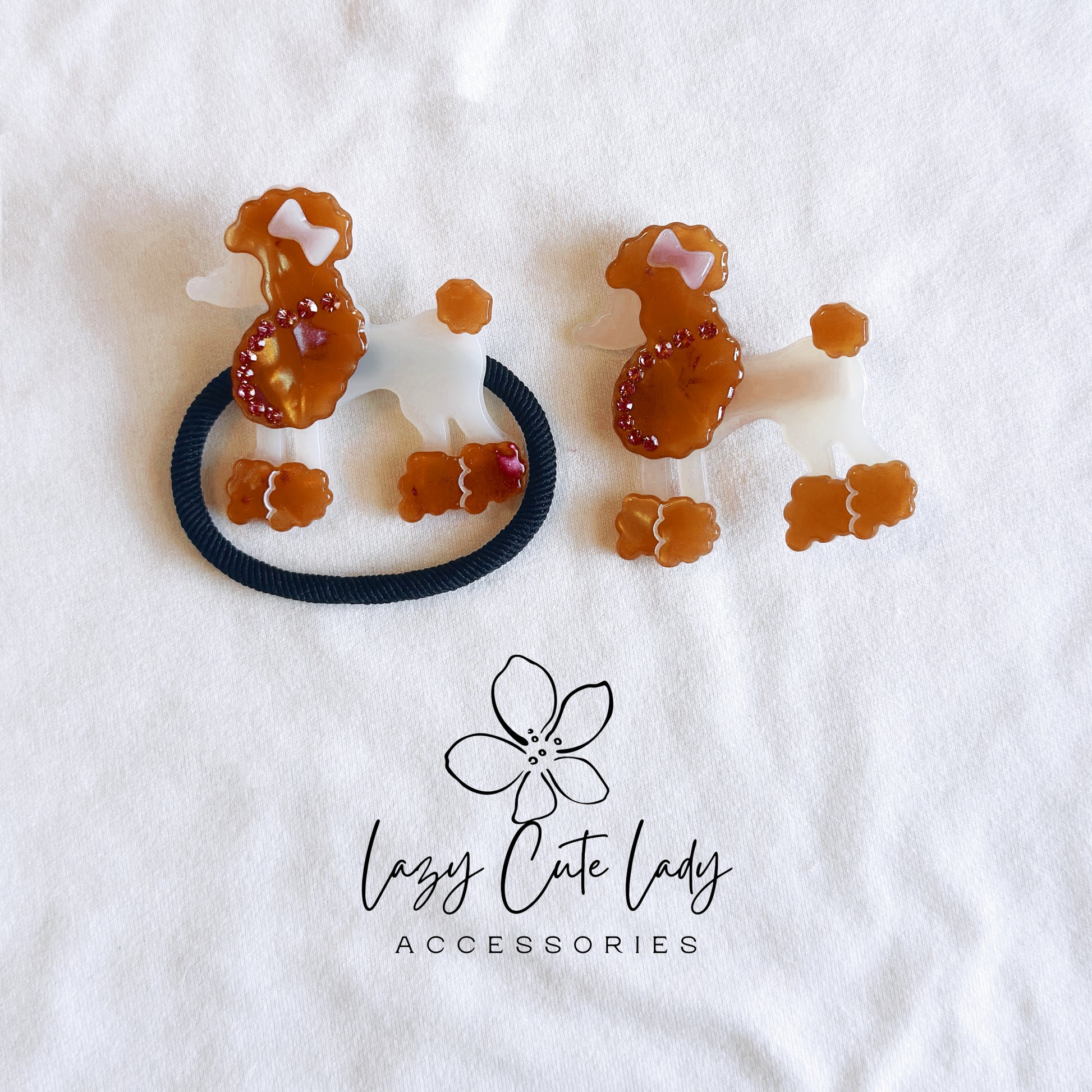 Add a touch of playful elegance to your hairstyle with our Adorable Poodle-Inspired Hair Accessories. Available as both hair clips and hair ties, these charming accessories feature a cute poodle design, inspired by the iconic breed. Each piece is available in three classic colors—white, black, and brown—and is adorned with sparkling rhinestones for a touch of glamour. Perfect for securing even thick hair, these accessories are suitable for all hairstyles and occasions. Whether you're dressing up for a casual day or a formal event, these versatile pieces add charm to any outfit and make a delightful gift.