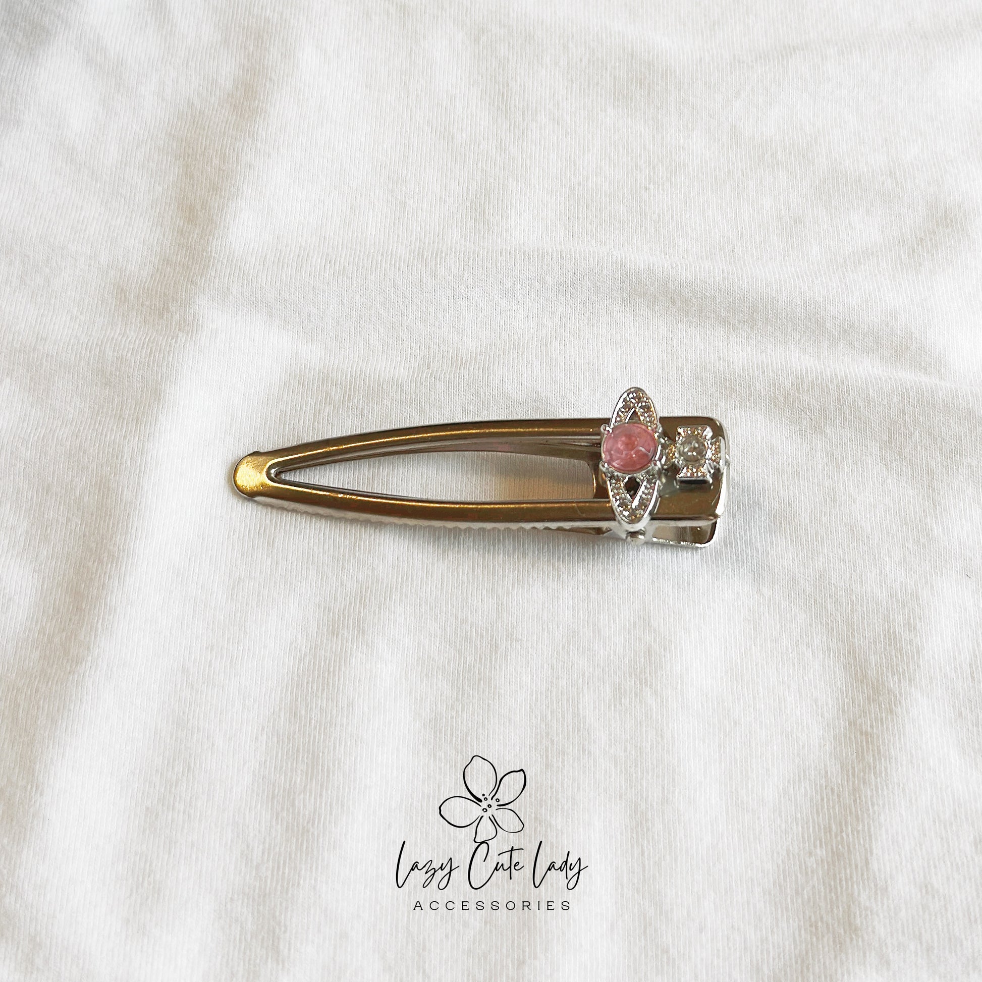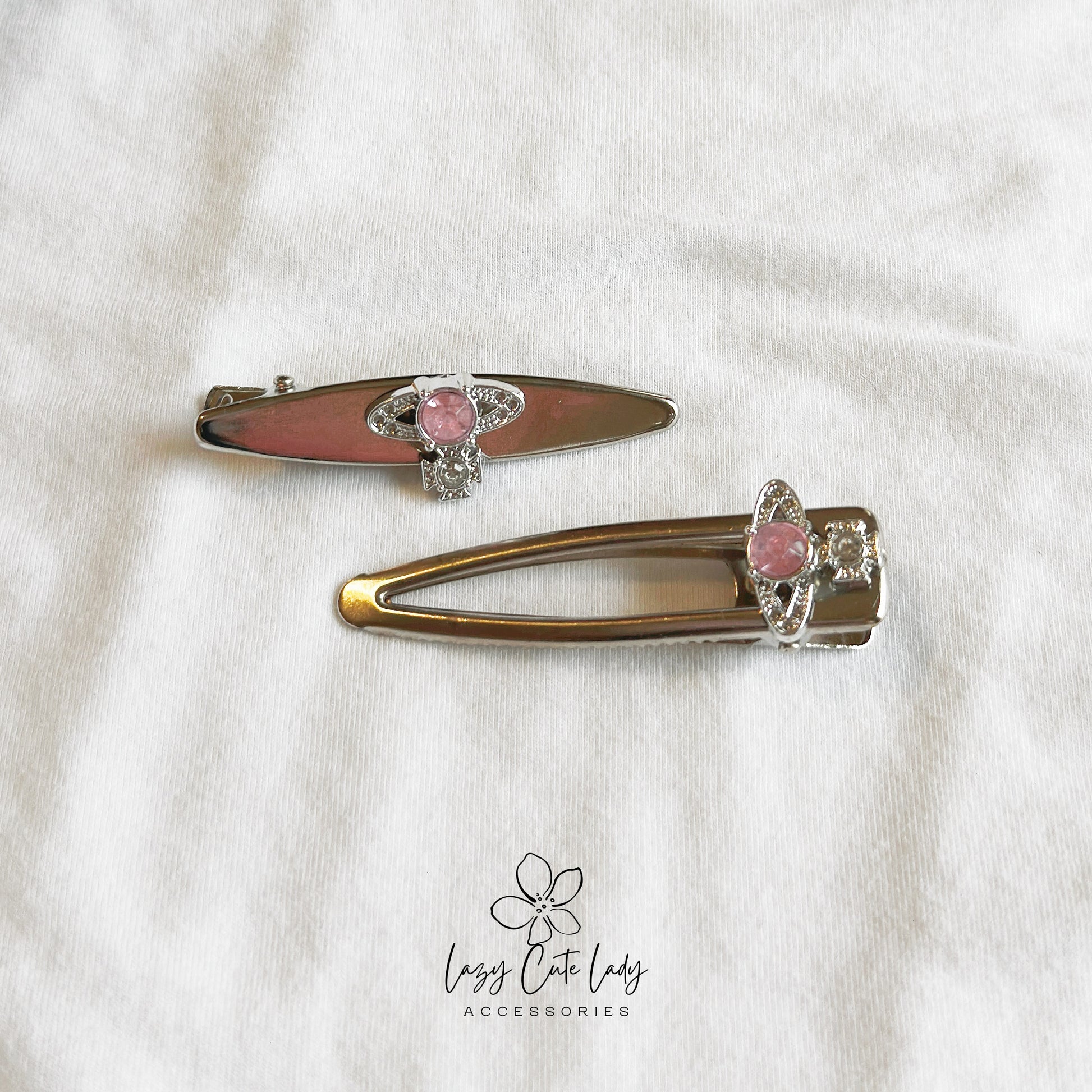 Artistic Craftsmanship: - Both clips exhibit meticulous craftsmanship, blending silver-tone metal and pink crystals to create a harmonious balance between artistry and elegance.