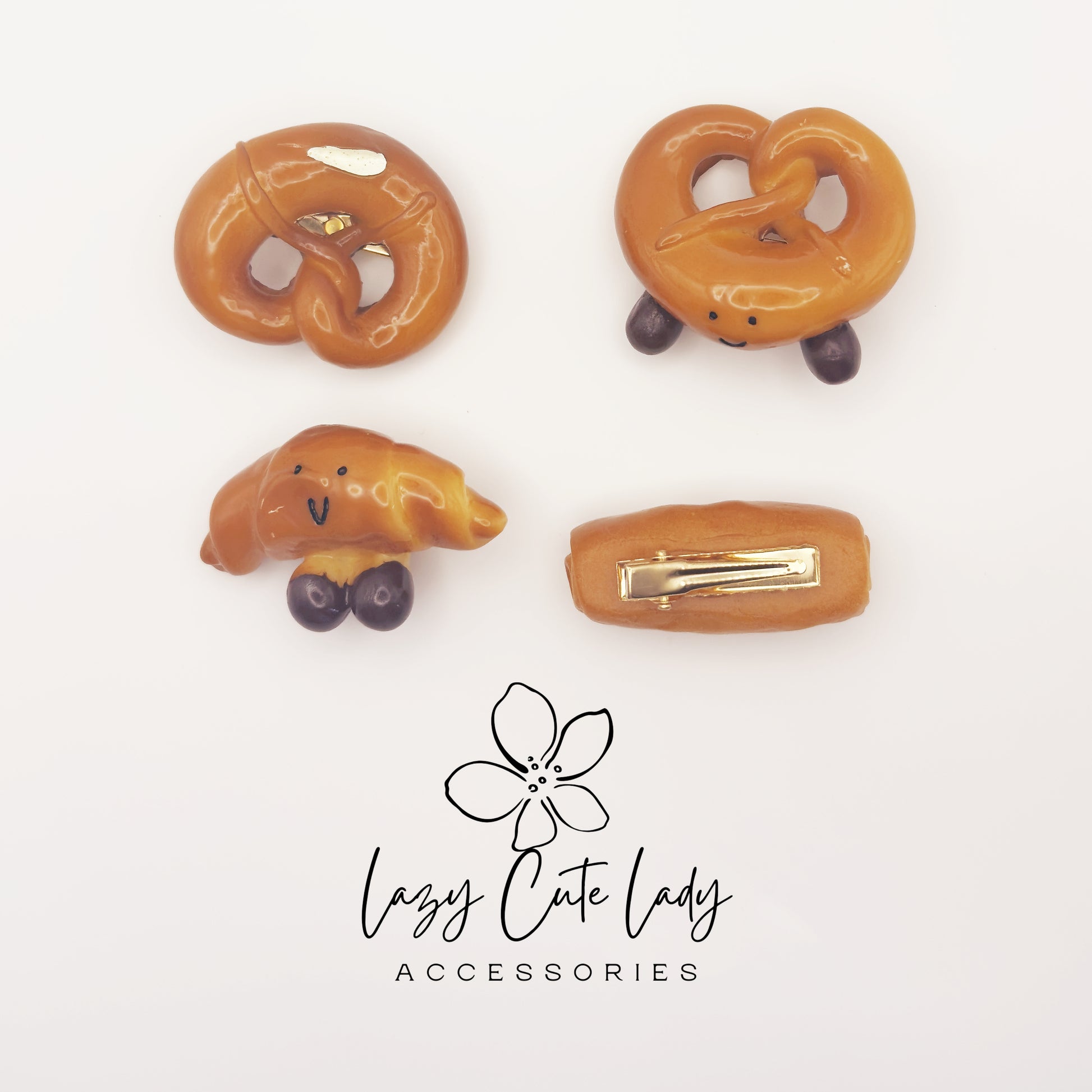 ✨ Sweeten up your hairstyle with these bakery-inspired hair clips! Each clip is designed to look like your favorite baked goods – from pretzels to croissants – with fun details and a glossy finish. Made from durable resin, these clips are lightweight, secure, and perfect for adding a playful touch to your look.