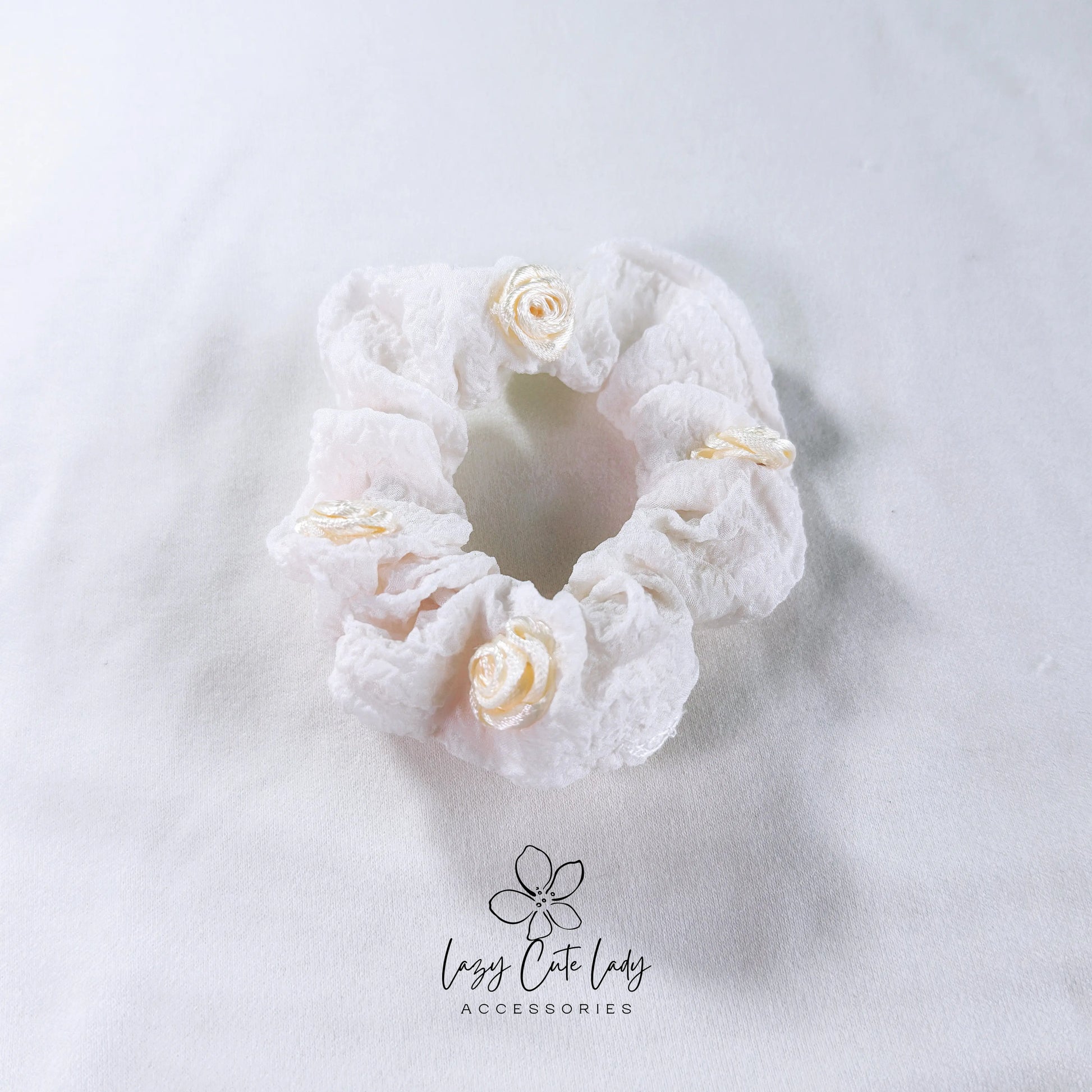 Indulge in the charm of these floral hair scrunchies—a perfect blend of cuteness and elegance for any hairdo.