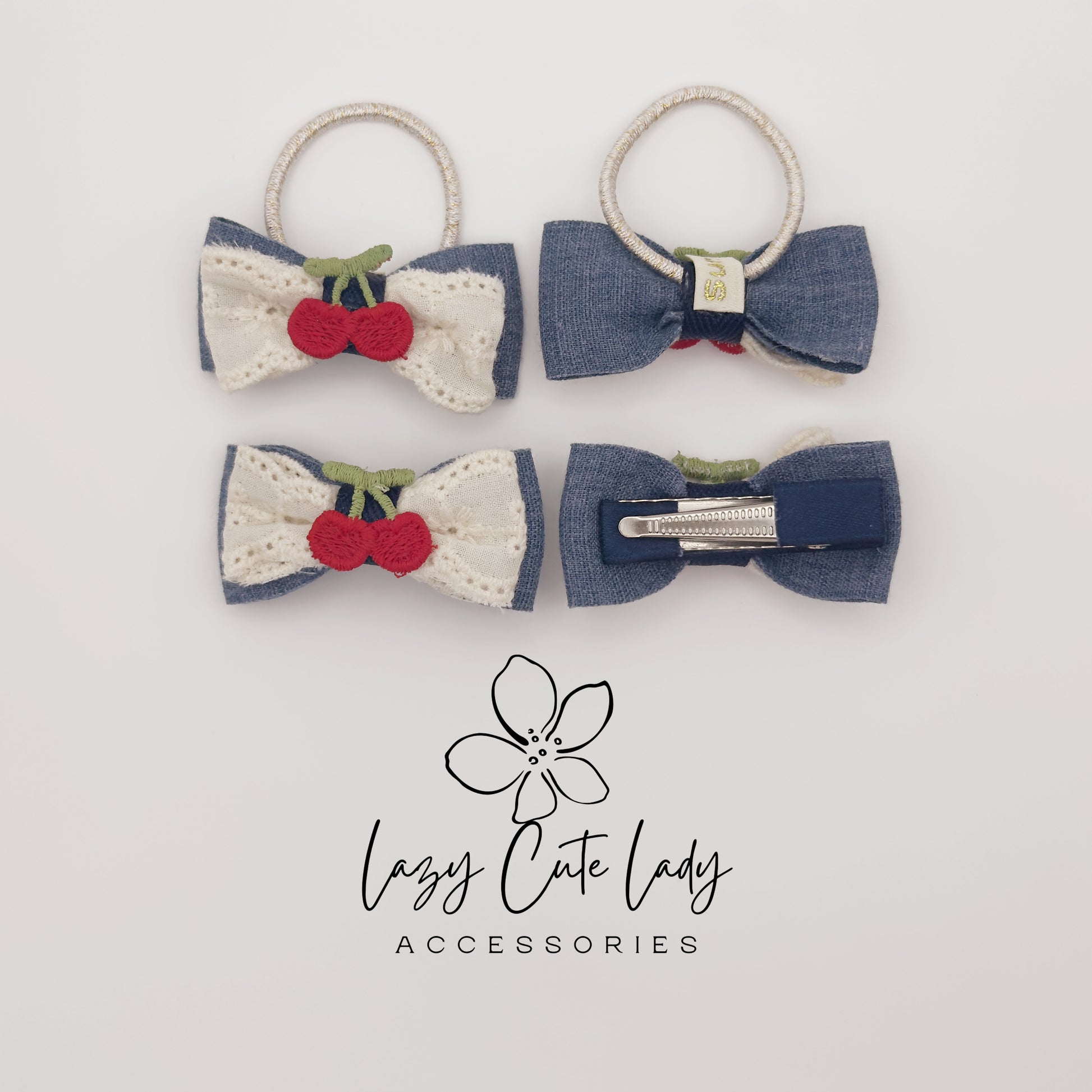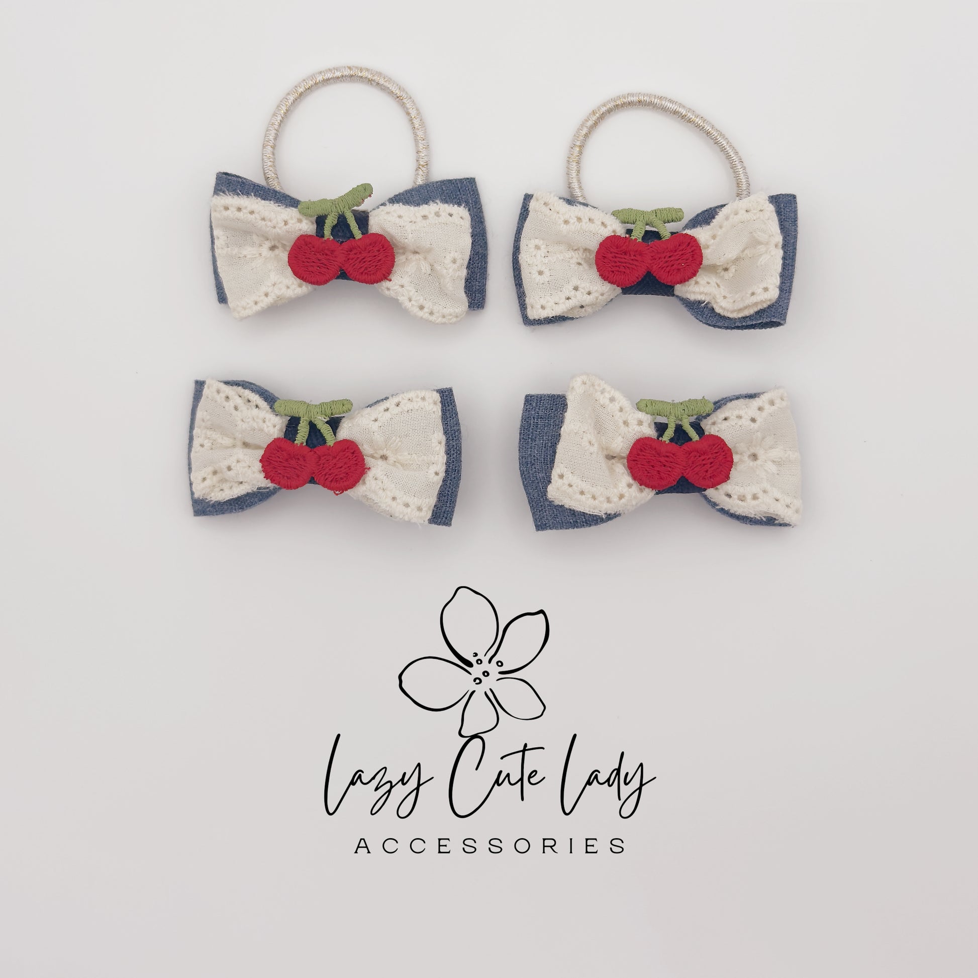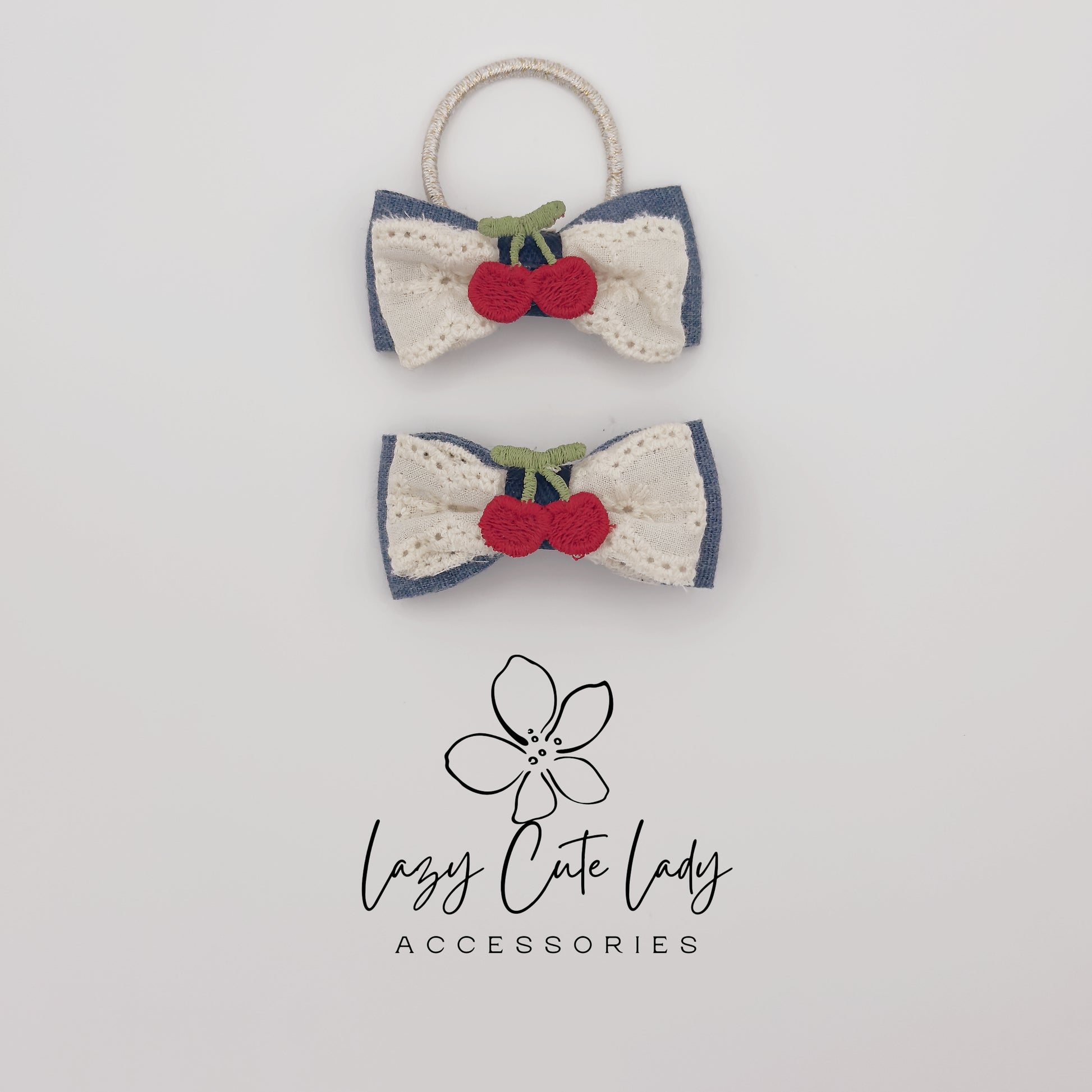 Cherry Bow Hair Clips & Hair Ties – Cute Denim and Lace Hair Accessories for Girls and Women