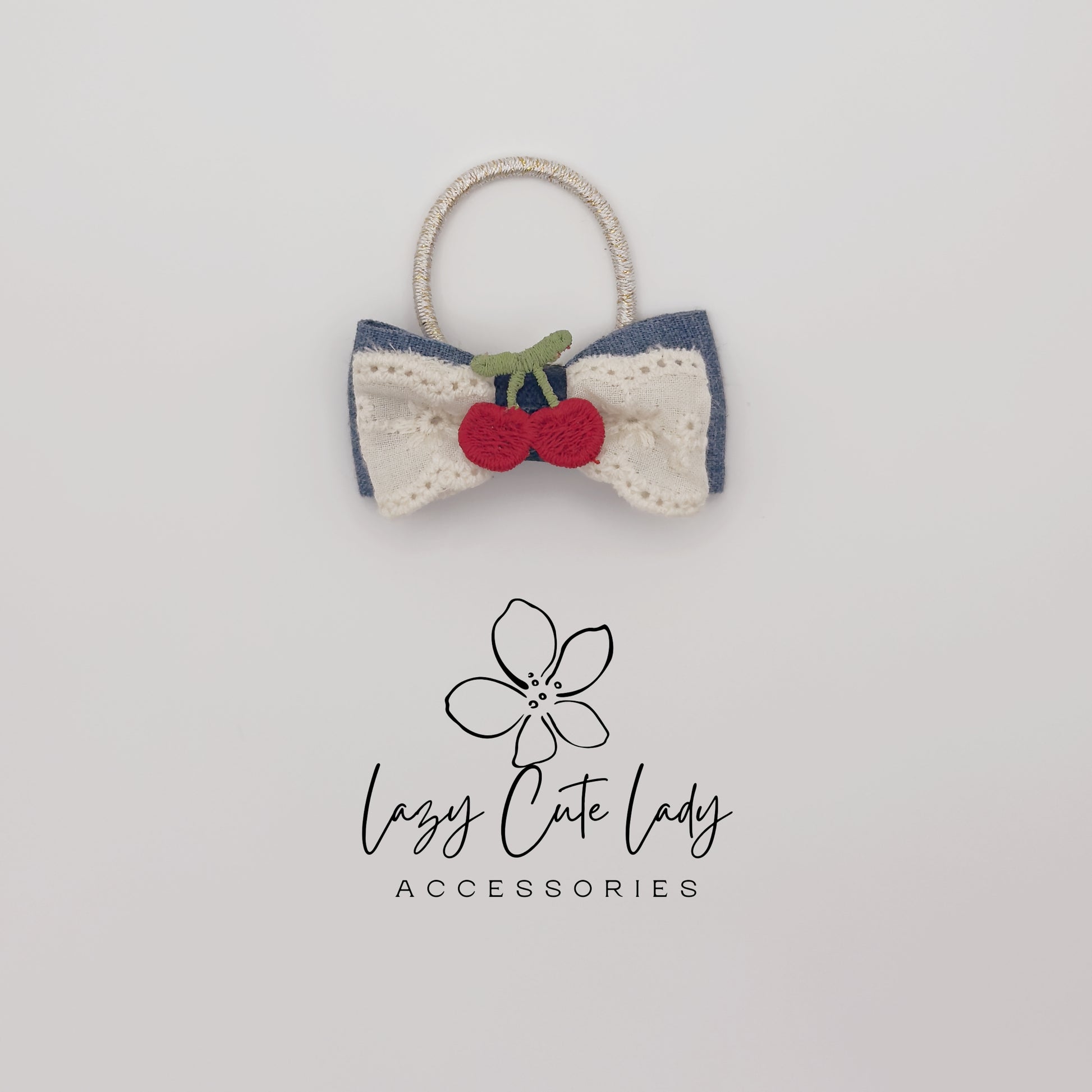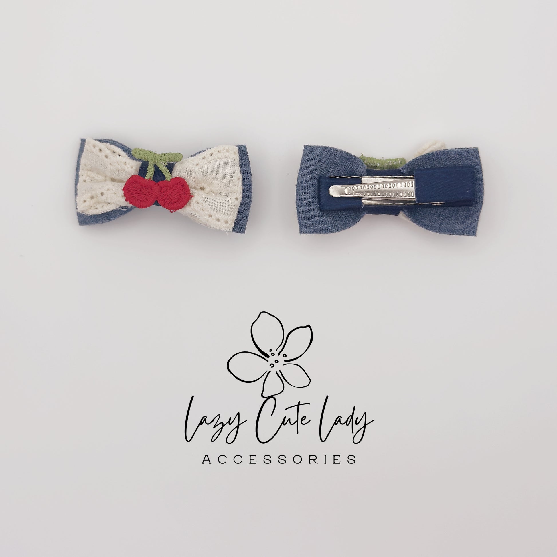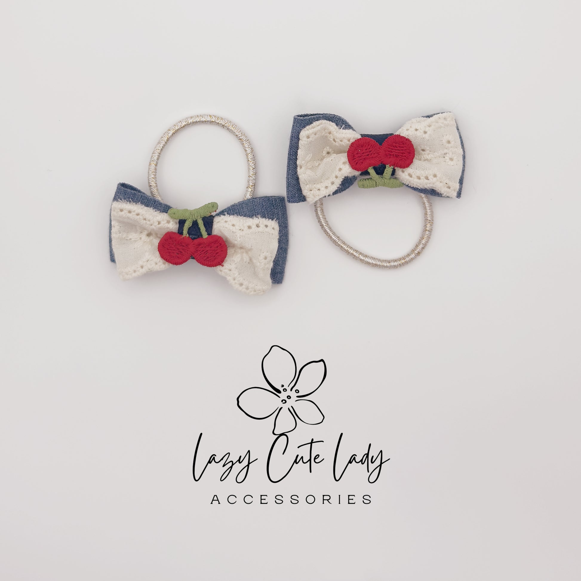 Cherry Bow Hair Clips & Hair Ties – Cute Denim and Lace Hair Accessories for Girls and Women