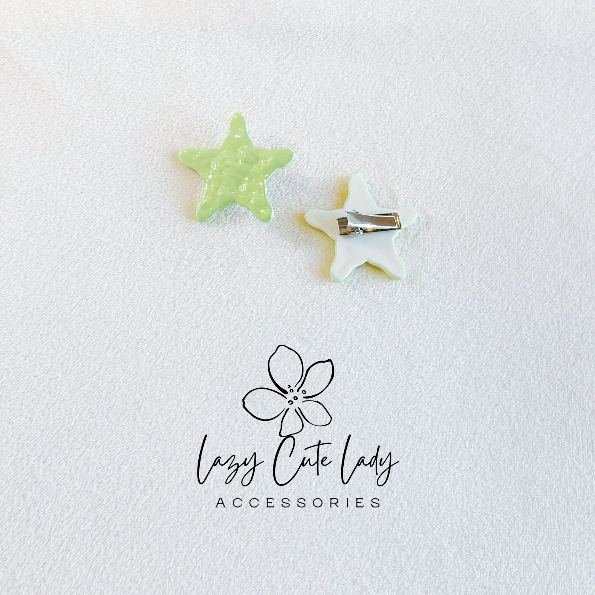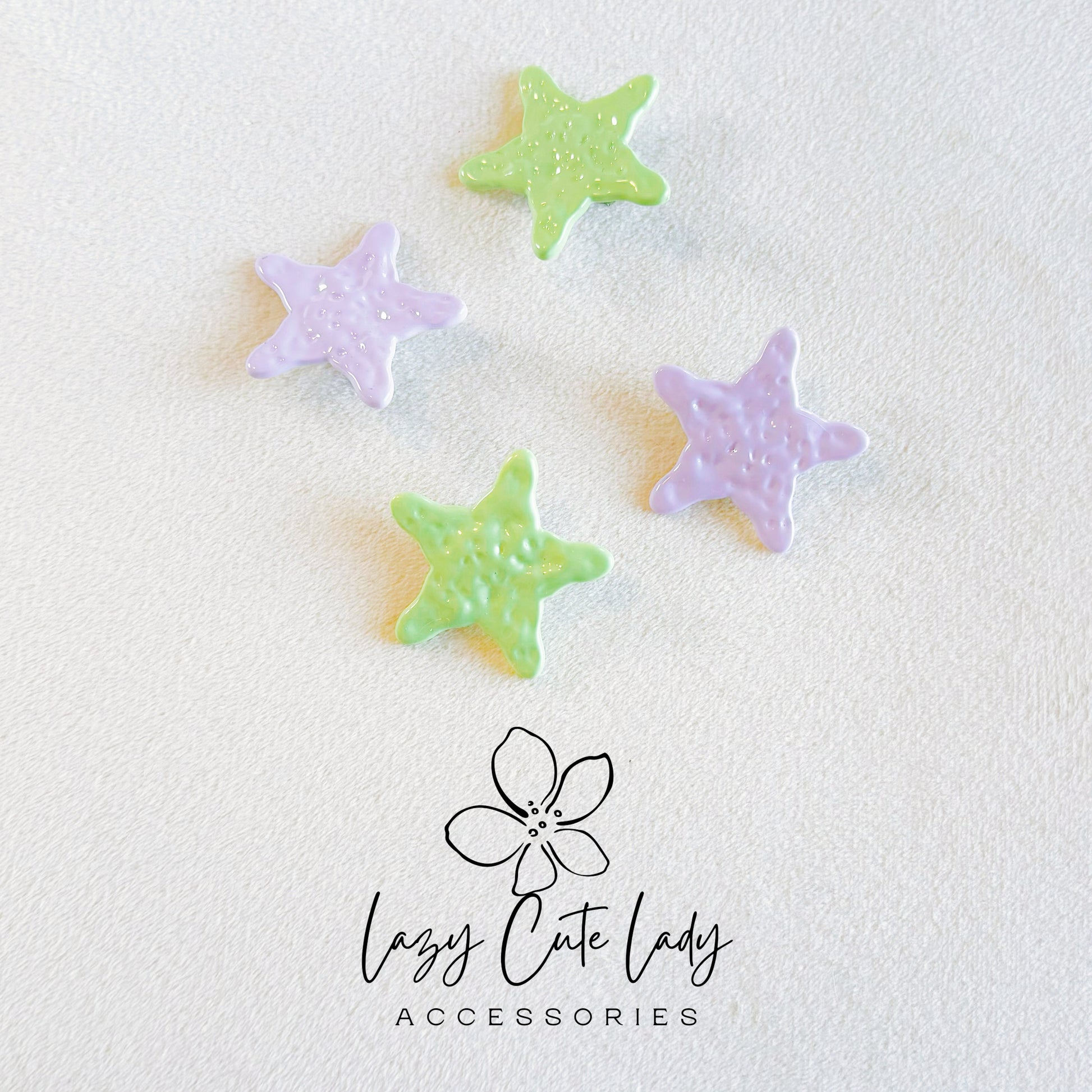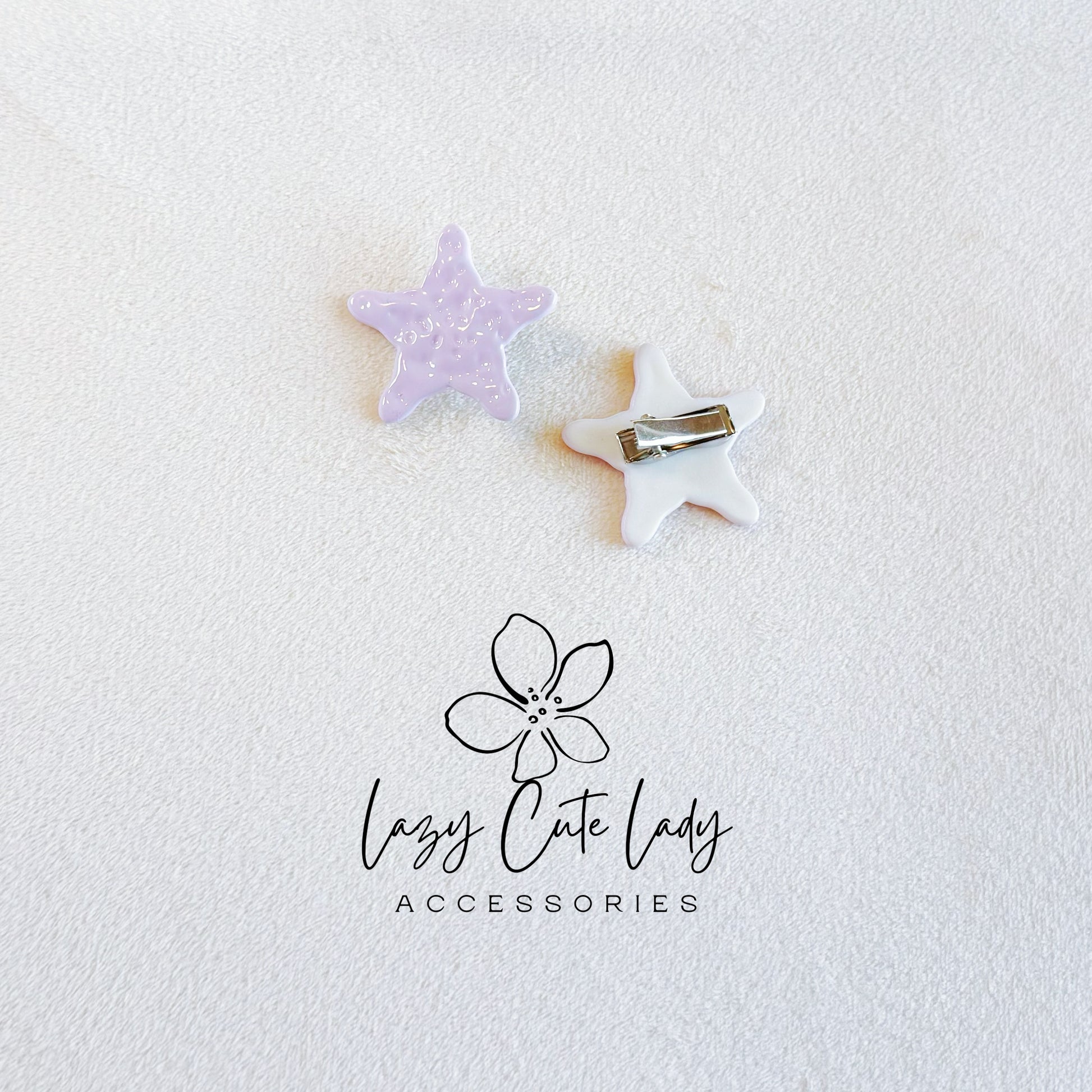 Add a splash of seaside sweetness to your look with these adorable starfish hair clips, designed in a candy-like finish for a playful, dreamy vibe. Available in two charming spring-ready colors — mint green and soft purple — these mini clips are perfect for everyday wear, beach outings, birthday parties, or even special occasions. Their compact size makes them ideal for kids, teens, and adults, and they're gentle enough for little ones too. Whether you're going for a cute, casual outfit or something a bit more dressed up, these clips are sure to give your hairstyle an instant charm boost. They pair beautifully with any hair type and outfit, making them a lovely gift idea for friends, daughters, or anyone who loves whimsical accessories.