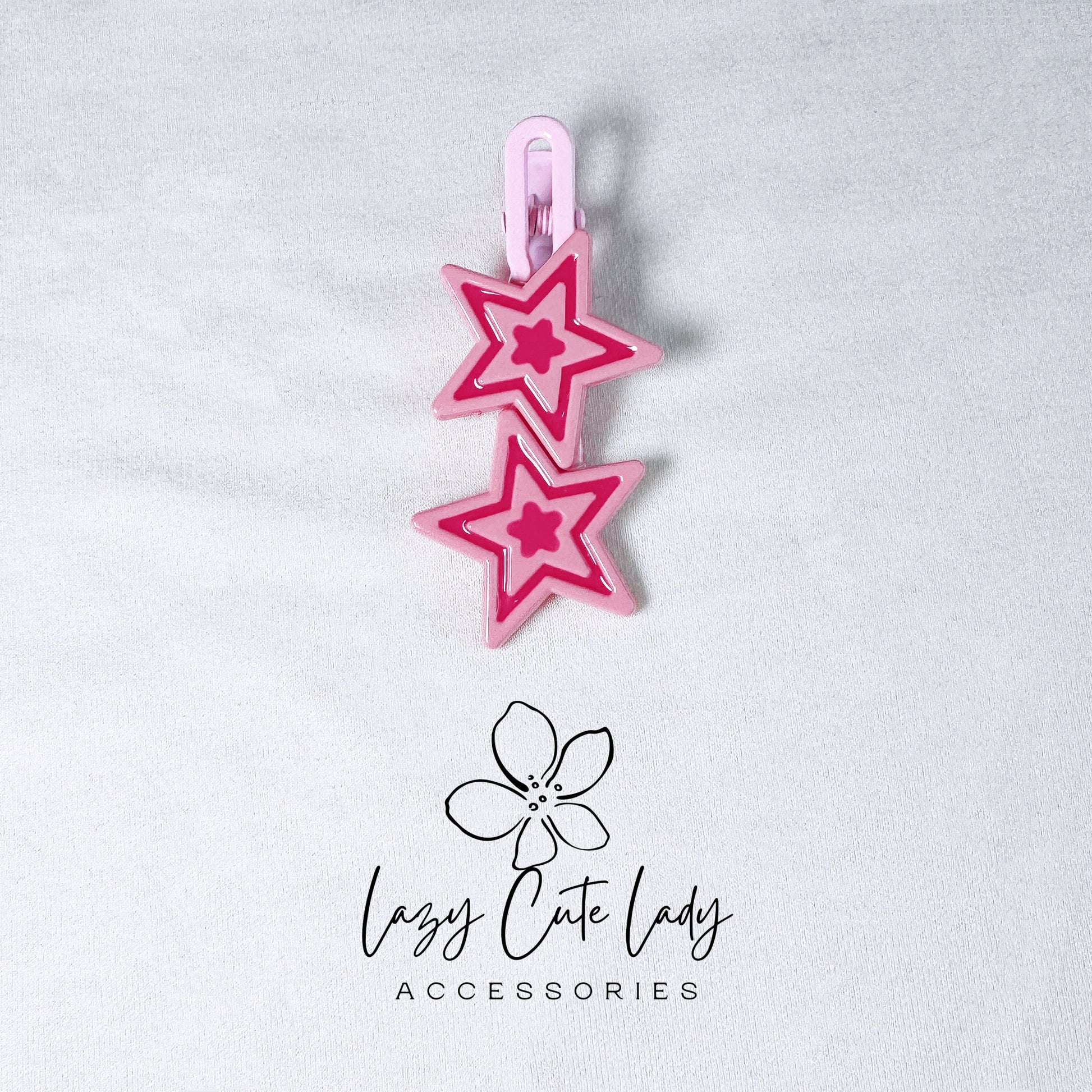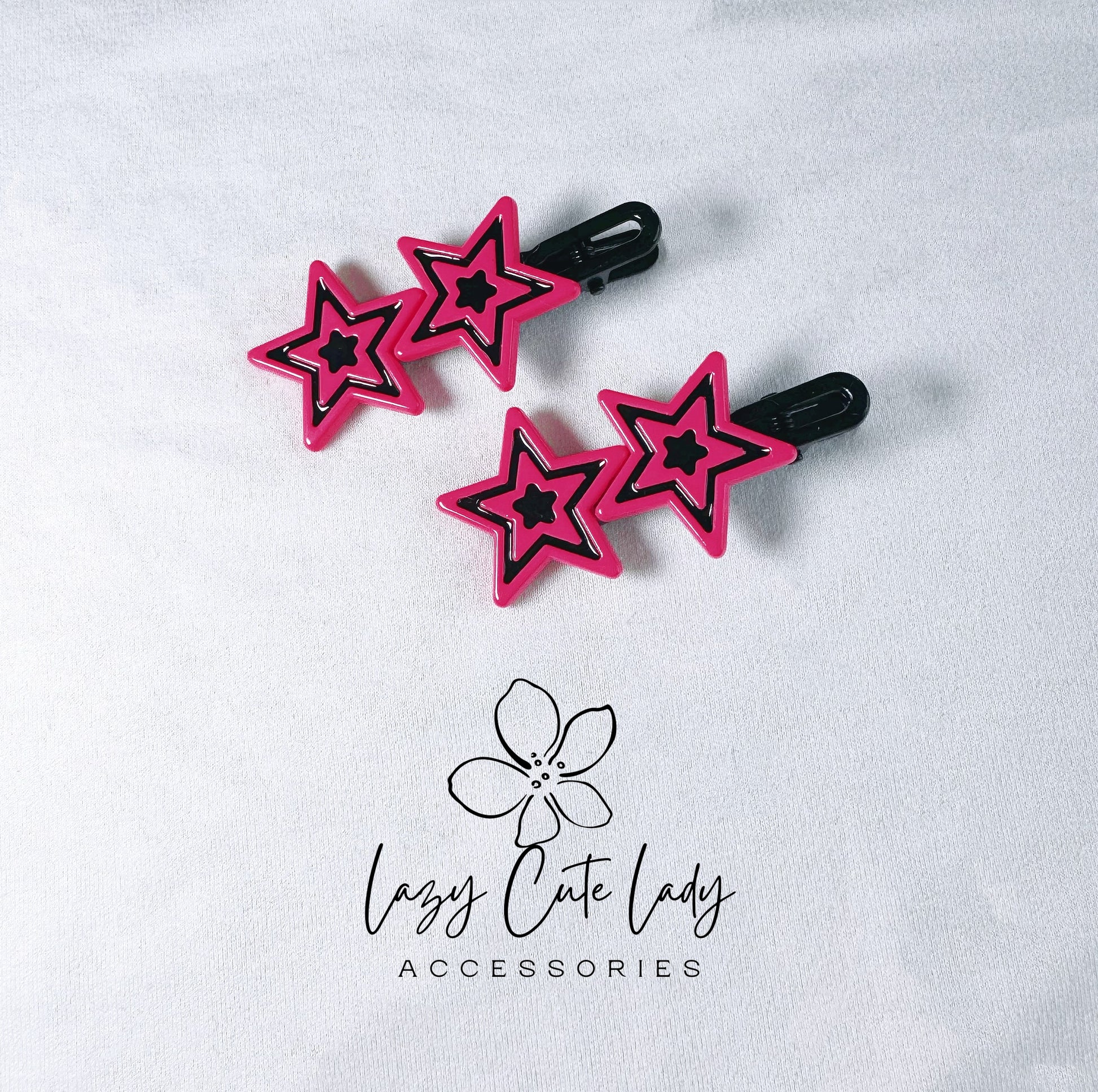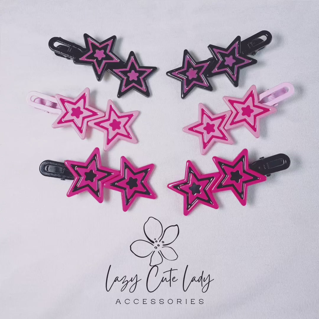 Elevate your style with our Dual Star Hair Clip, featuring two bold stars in striking color combinations: black and purple, pink and magenta, or magenta and black. This accessory perfectly blends cuteness with individuality, giving off a cool, edgy vibe. Designed to hold even thick hair securely, it’s a versatile piece that enhances any hairstyle for both casual and formal occasions. Whether you're dressing up or down, this clip is a statement piece suitable for all ages and an excellent gift idea.