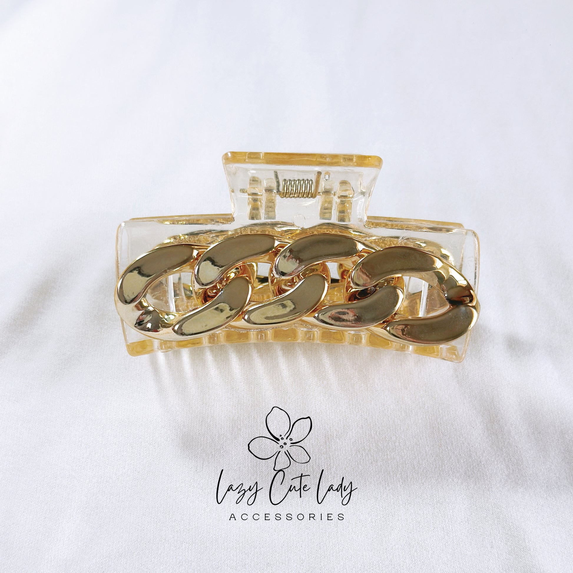 Chic Chain Decoration: - The hair claw is adorned with metal chains, adding a stylish and contemporary element to your hairstyle.