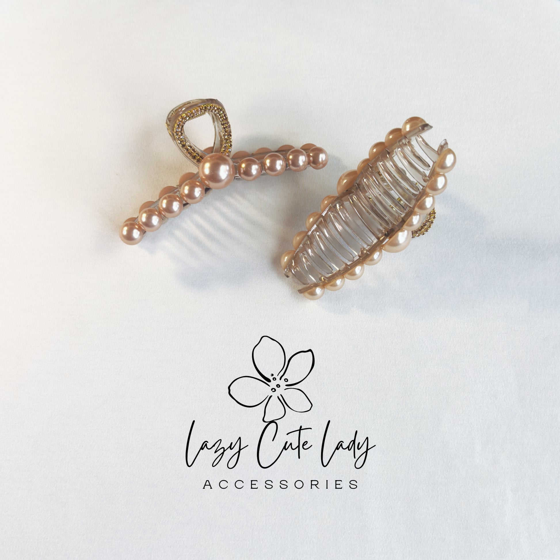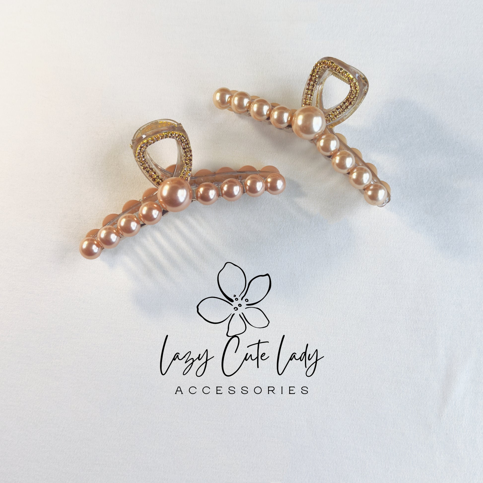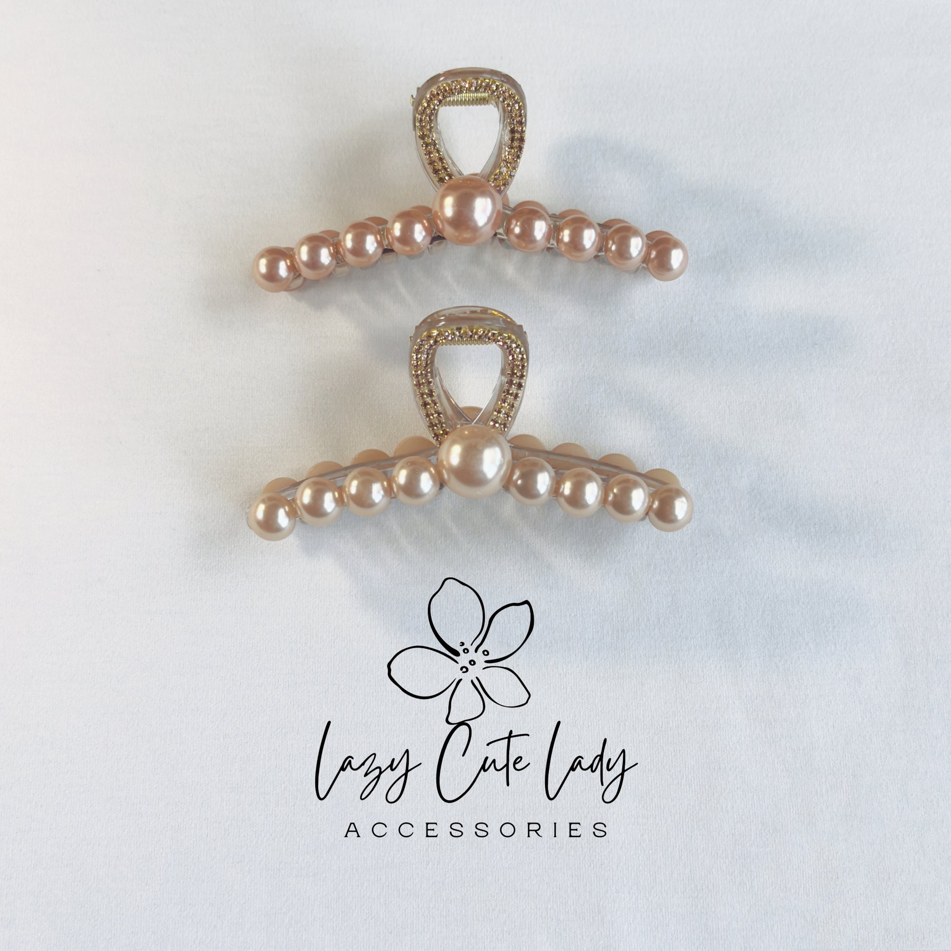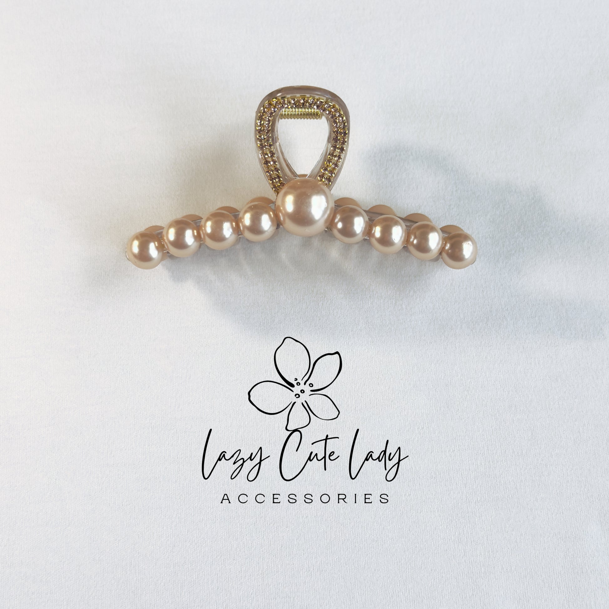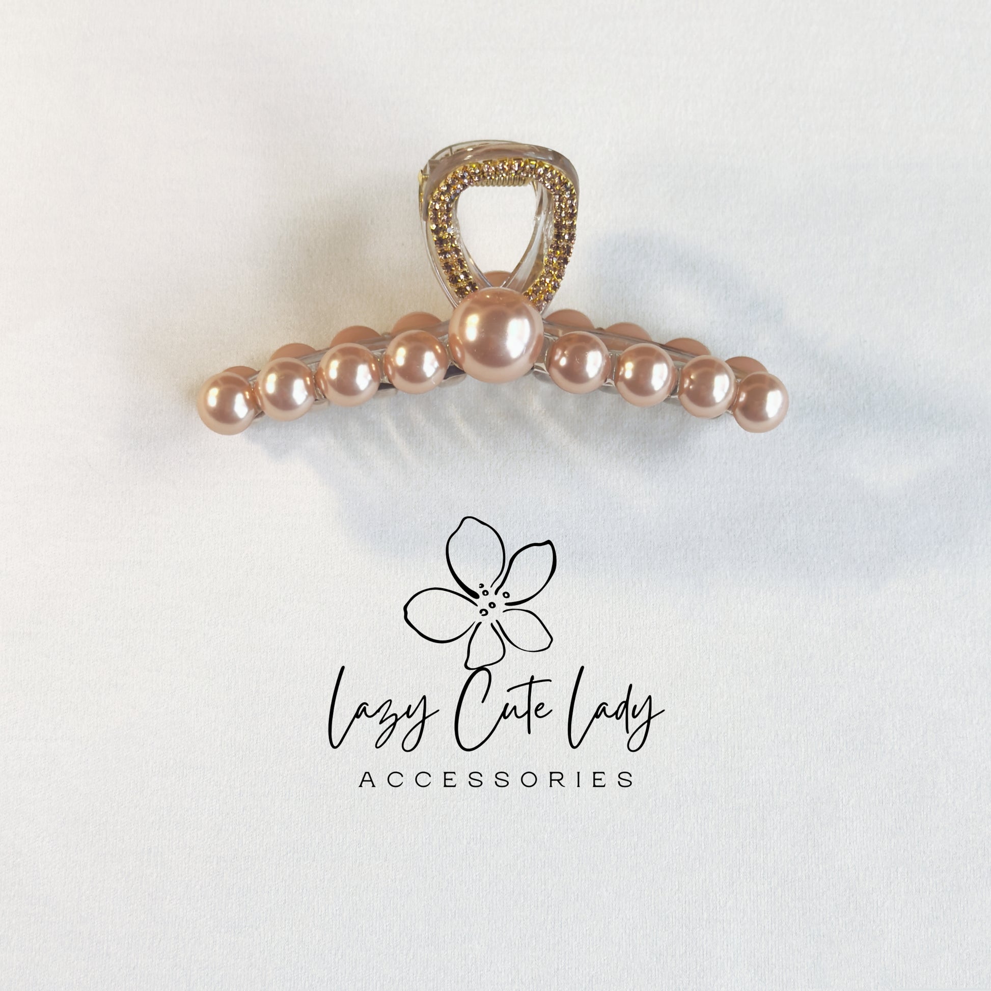 Bring elegance to your everyday style with our Gold Pearl Claw Clip, featuring a gold rhinestone handle and your choice of two luxe pearl tones. With a strong hold and a graceful silhouette, it's perfect for work, weddings, or daily glam.