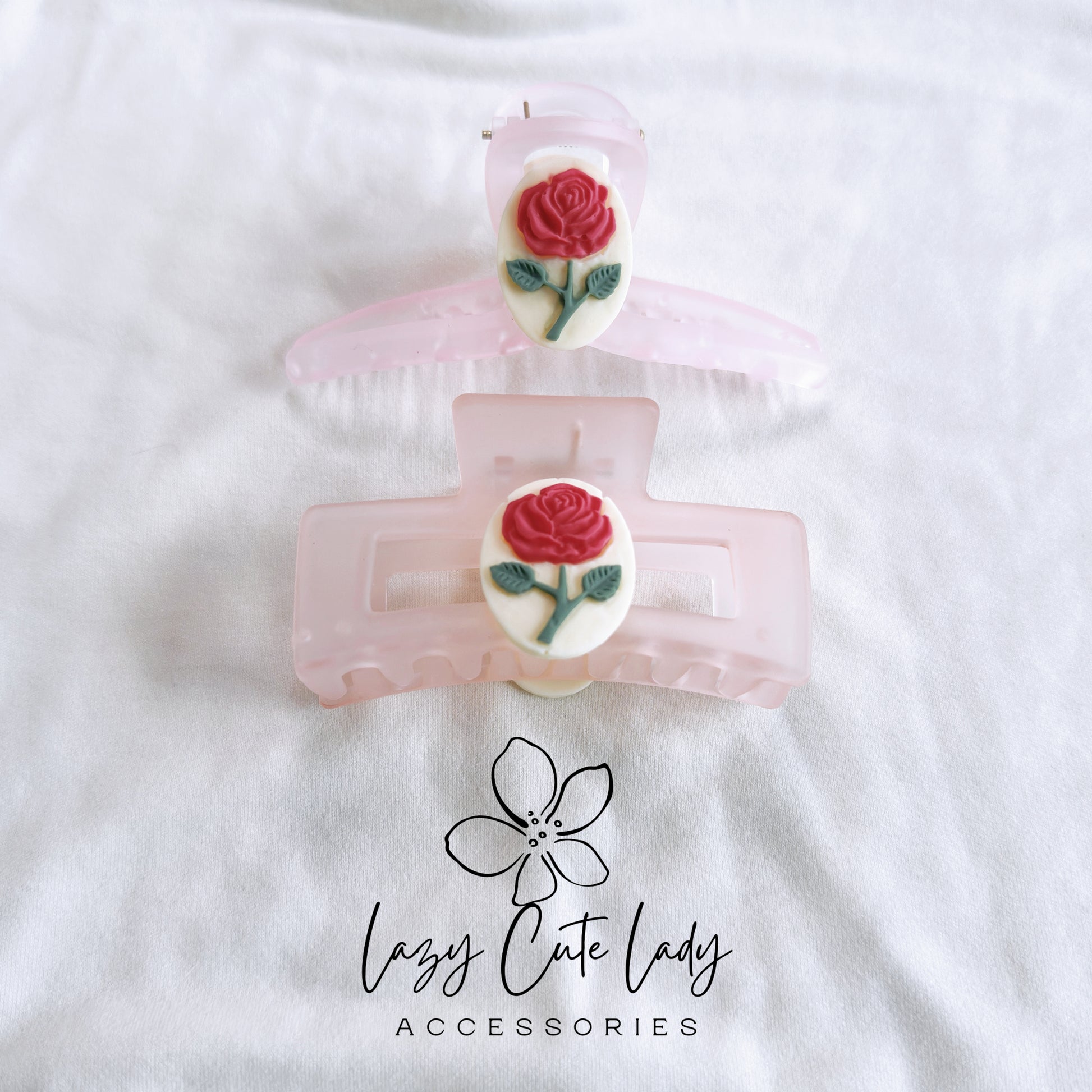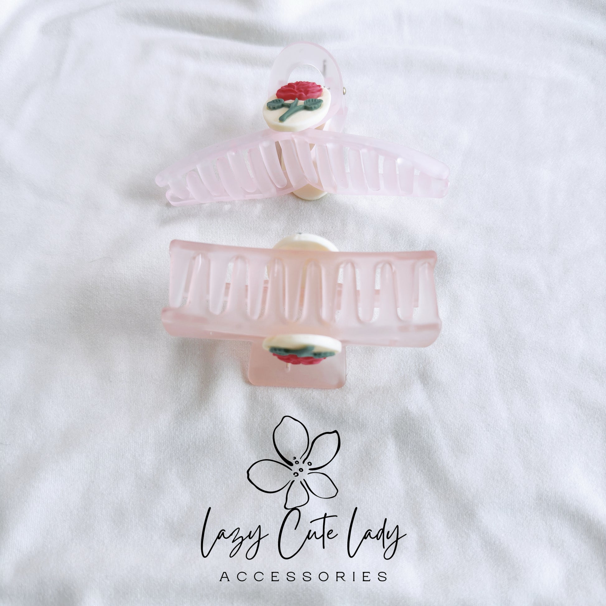 Elegant Pink Ice Rose Hair Claw - Two Stunning Designs
