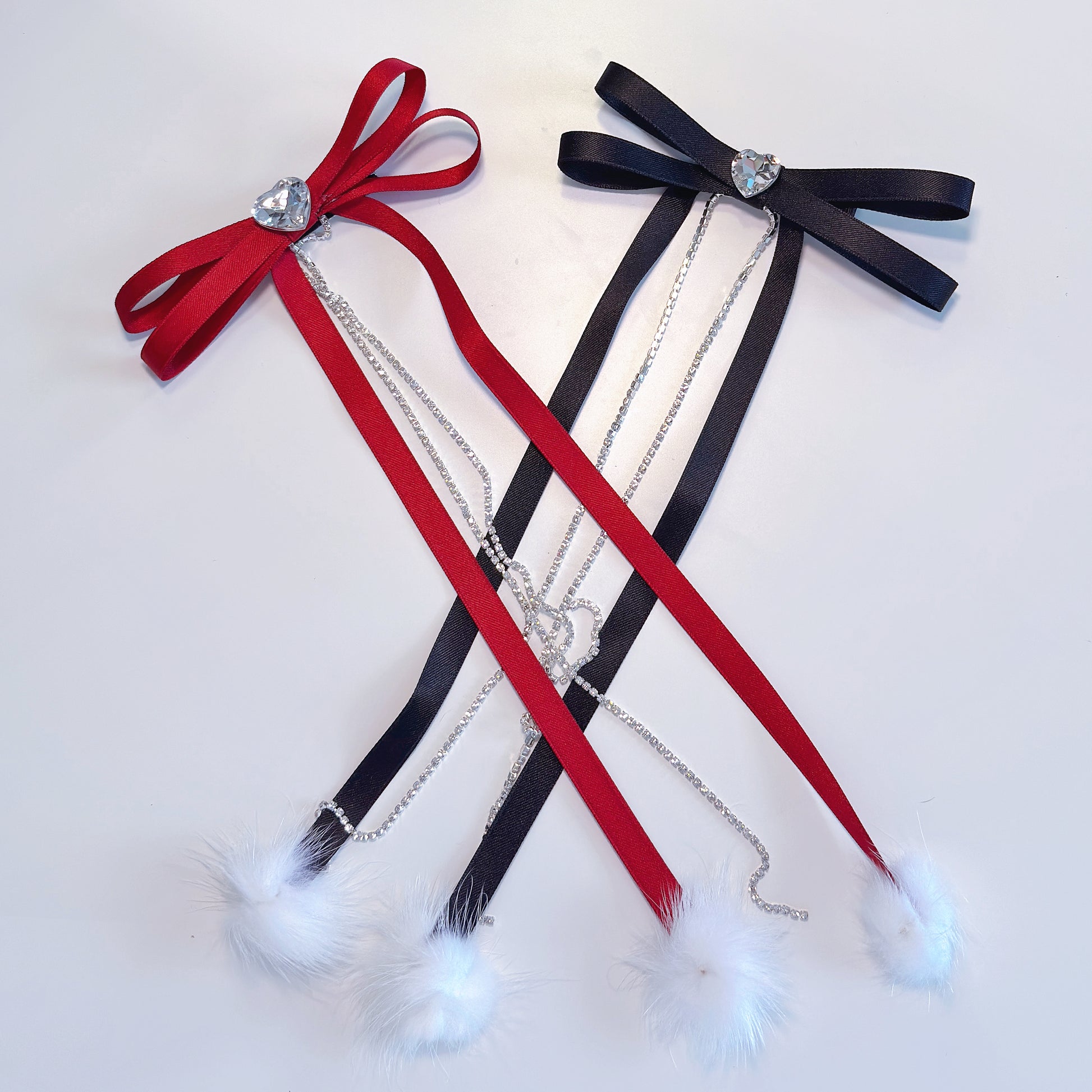 - The bow design with long ribbons and rhinestone chain adds a delightful and elegant touch to your hairstyle.