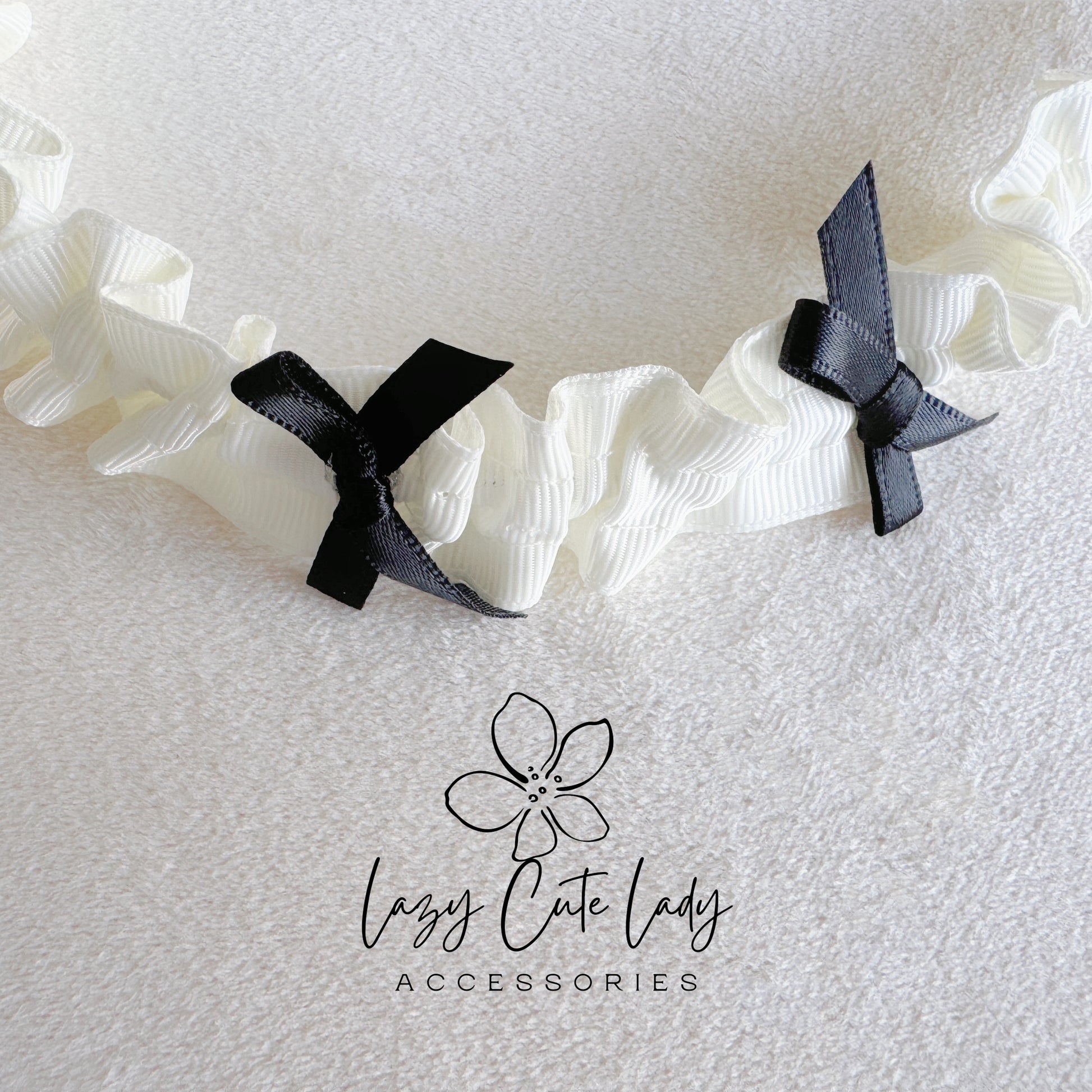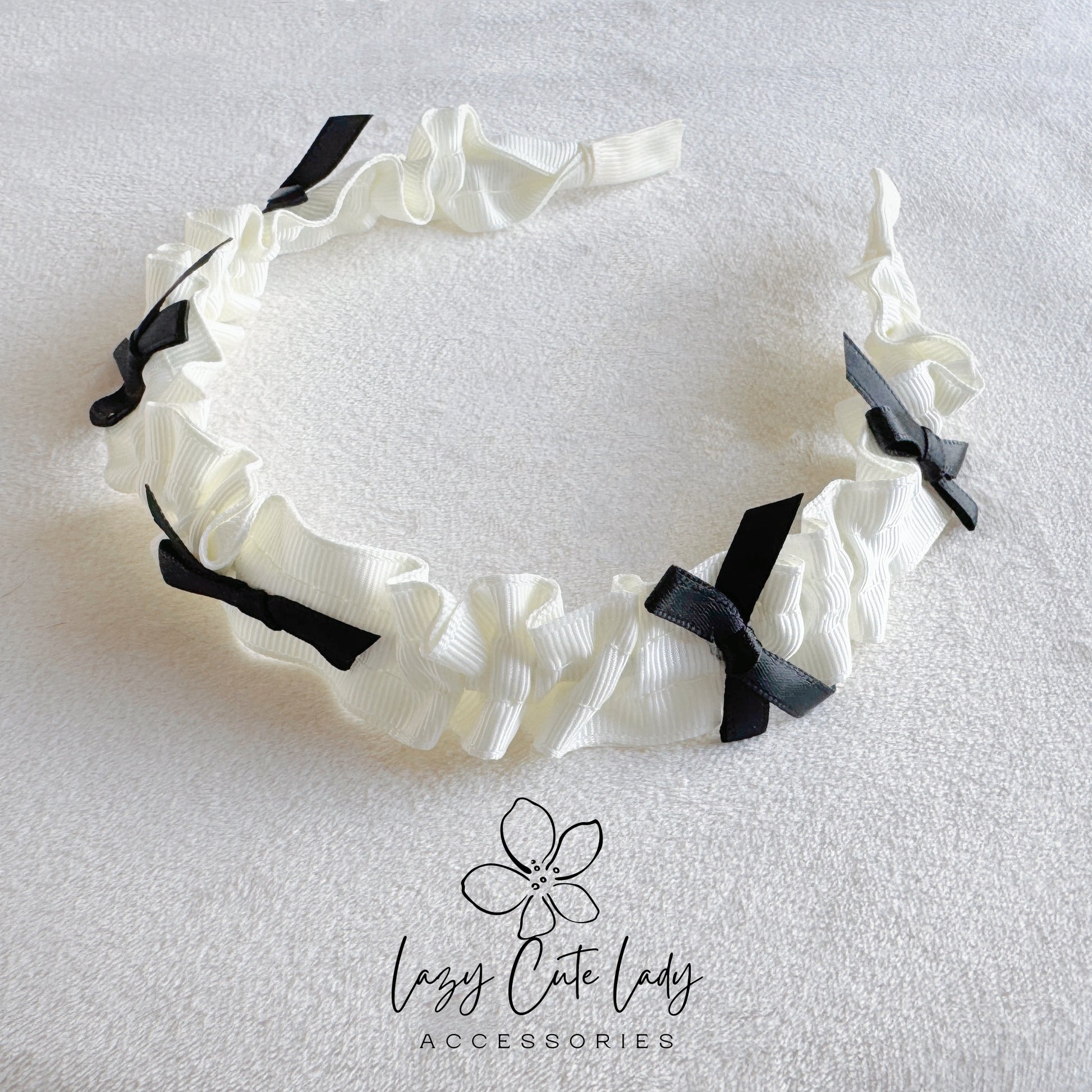 This white fabric headband with delicate black mini ribbon bows is the perfect blend of elegance and sweetness. The contrast of black and white creates a timeless, sophisticated look, making it a must-have accessory for any wardrobe. Whether you're styling your hair for a casual day out, a formal event, or a special occasion, this headband will effortlessly enhance your outfit. Designed for all hair types, it offers a comfortable and secure fit.
