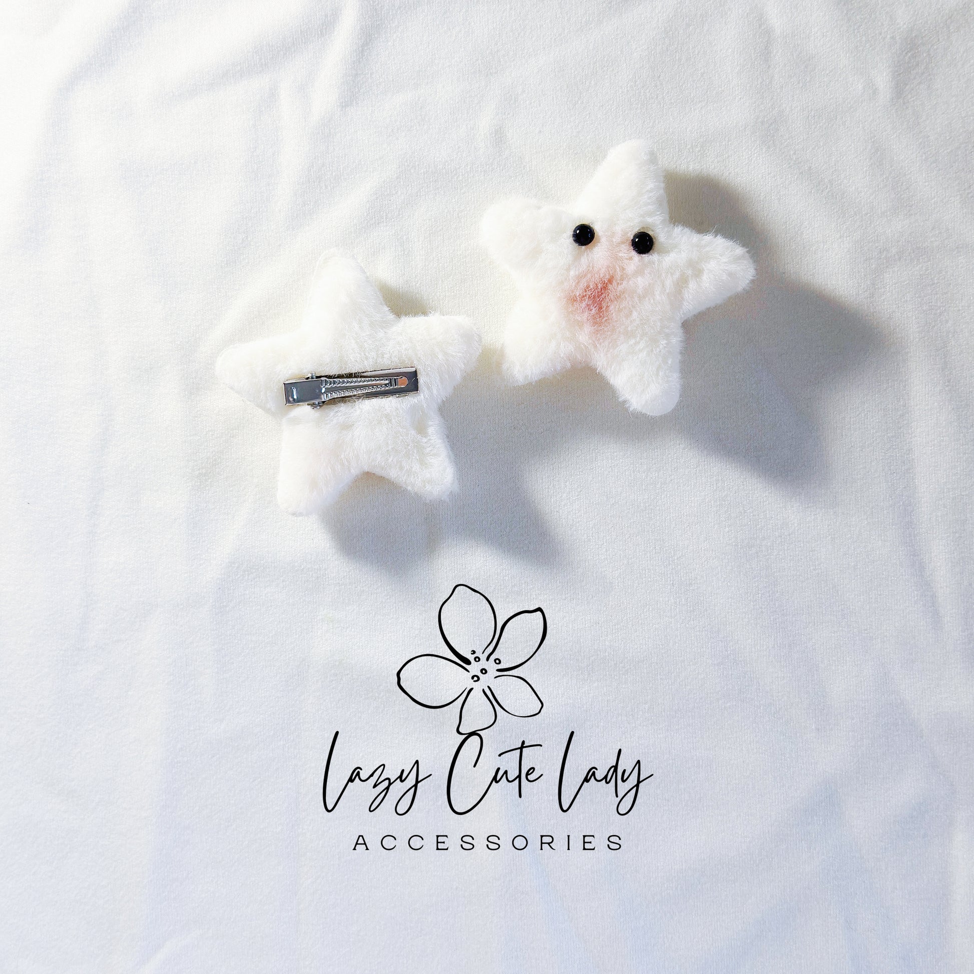 Fluffy Starfish Hair Clips – Soft Plush Hair Accessories with Cute Blushing Face for Kawaii Looks