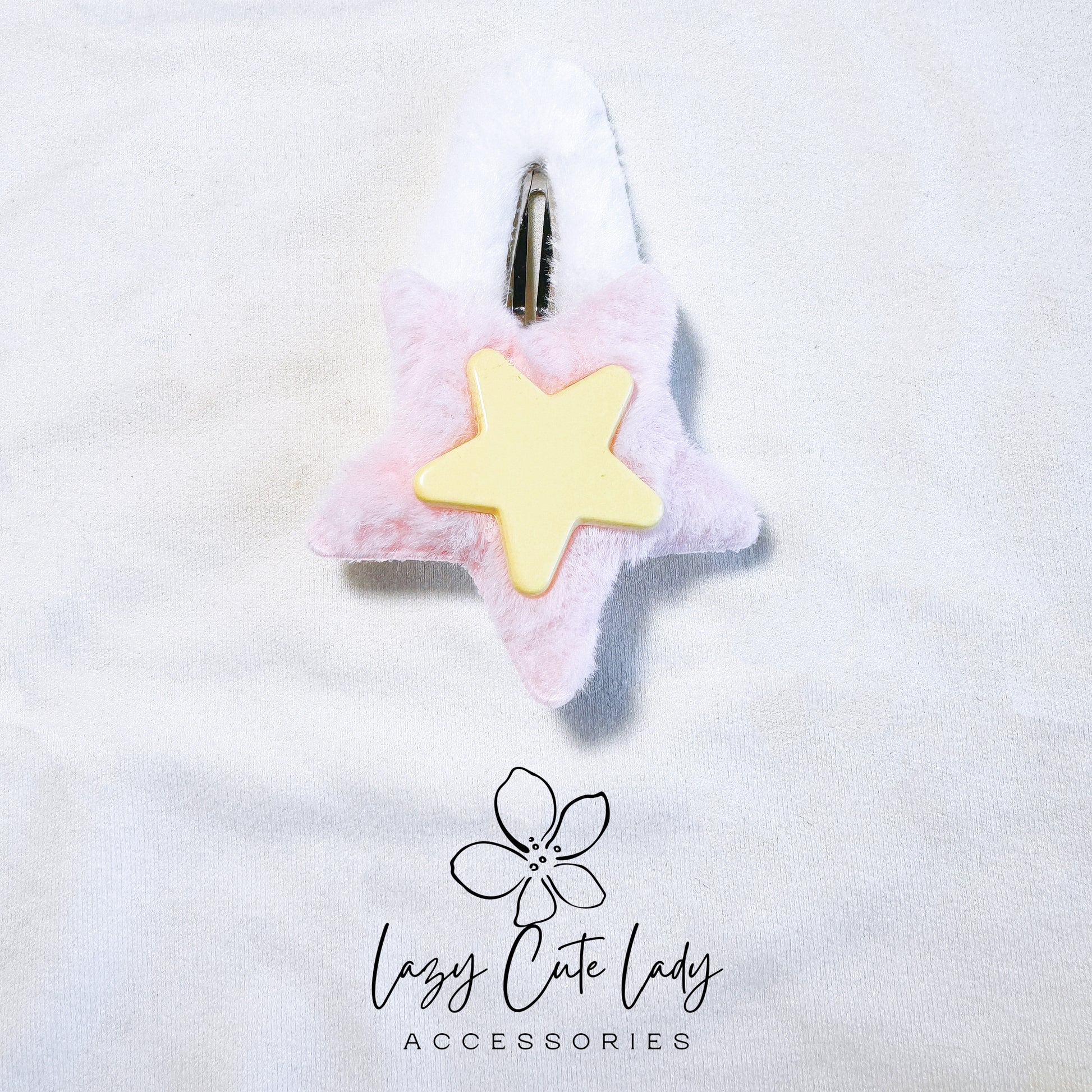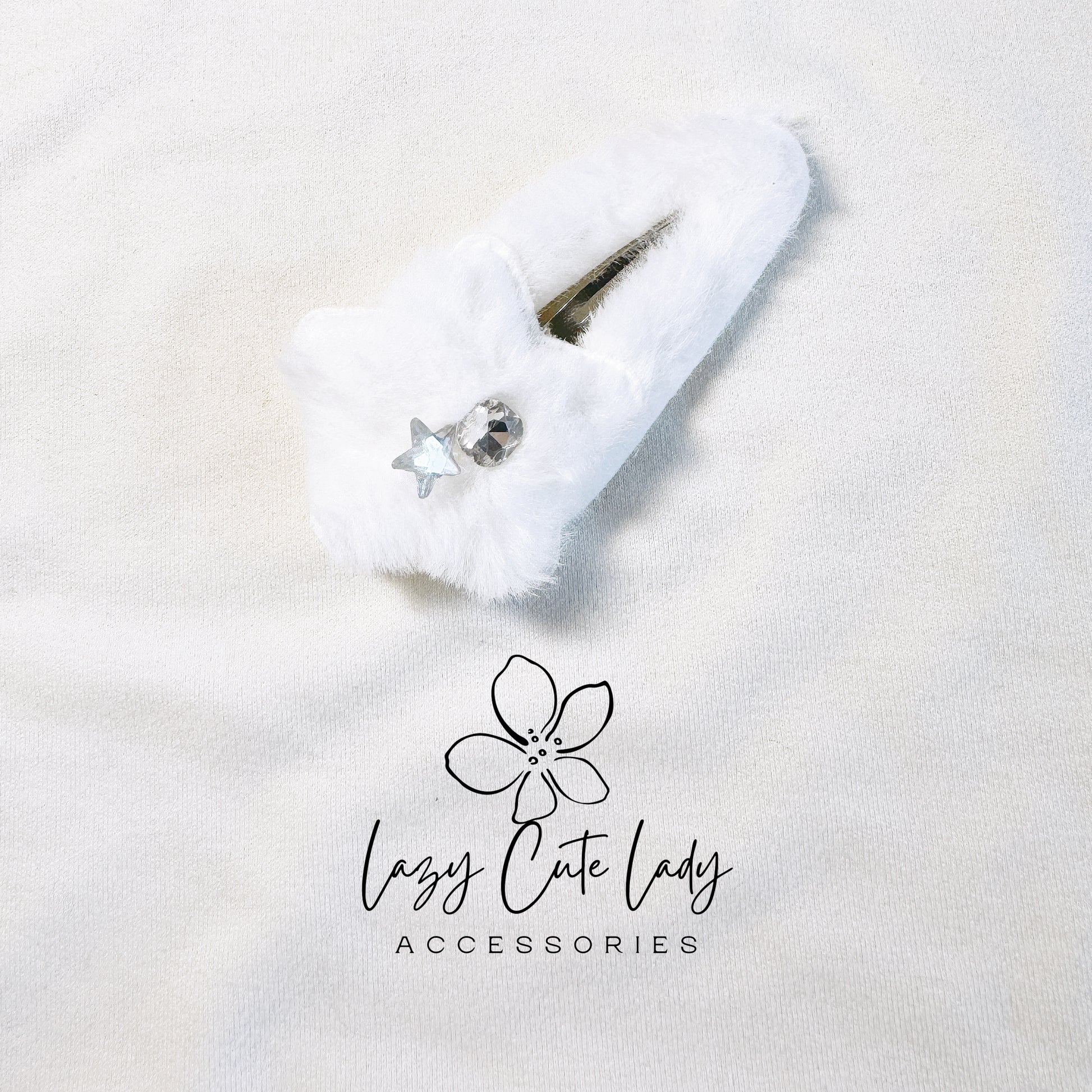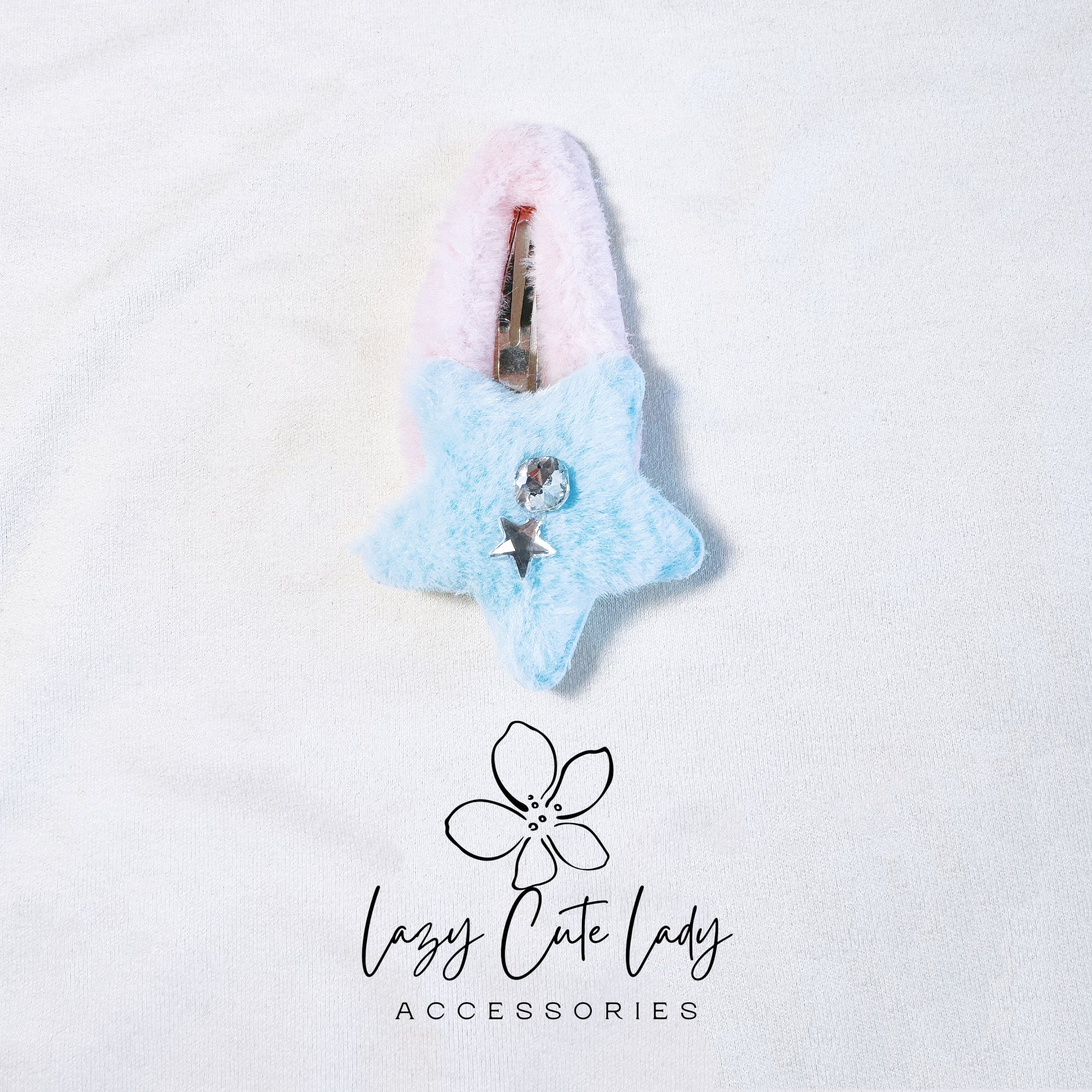 Fuzzy Star Hair Clips with Rhinestones - New Adorable Collection in White and Blue