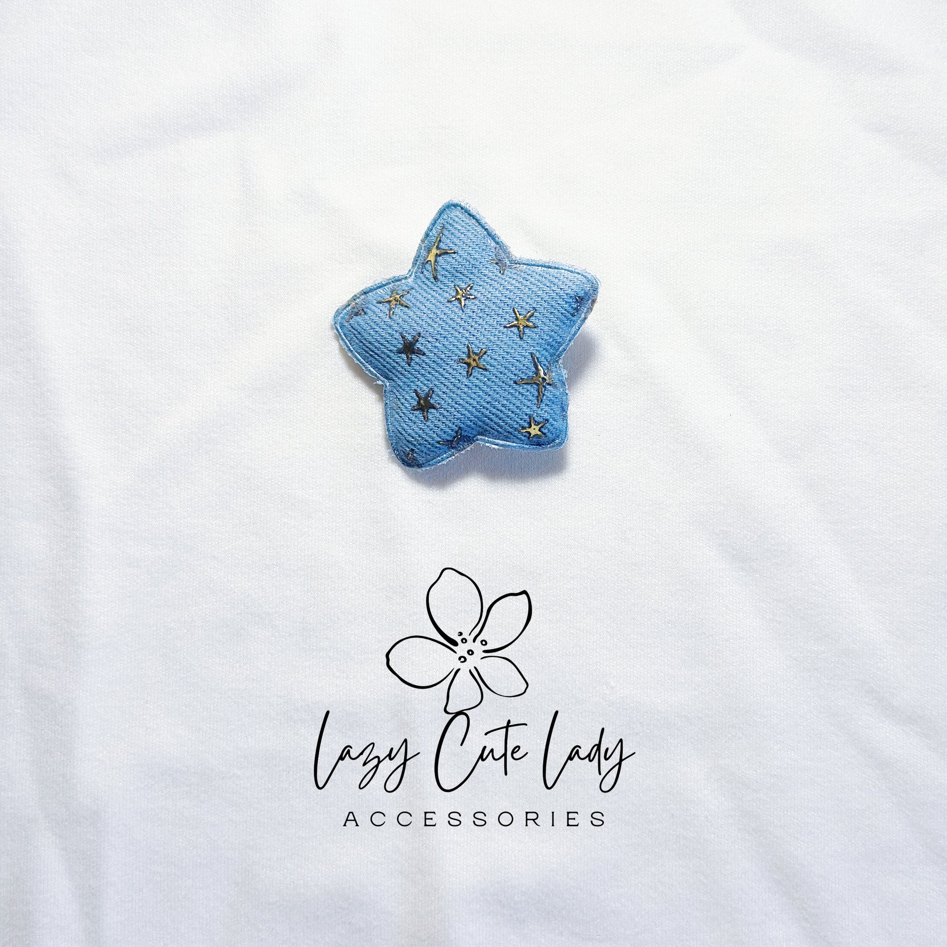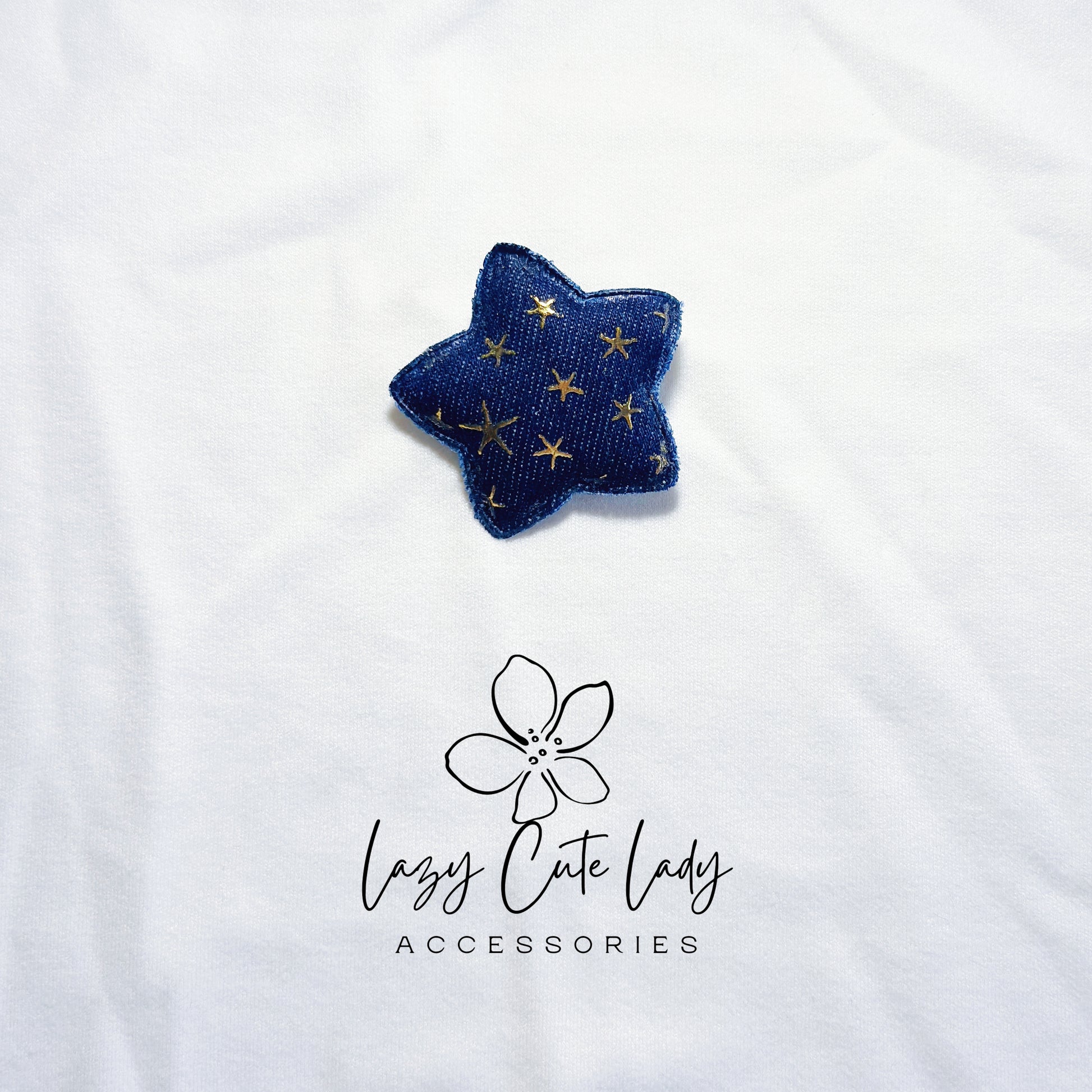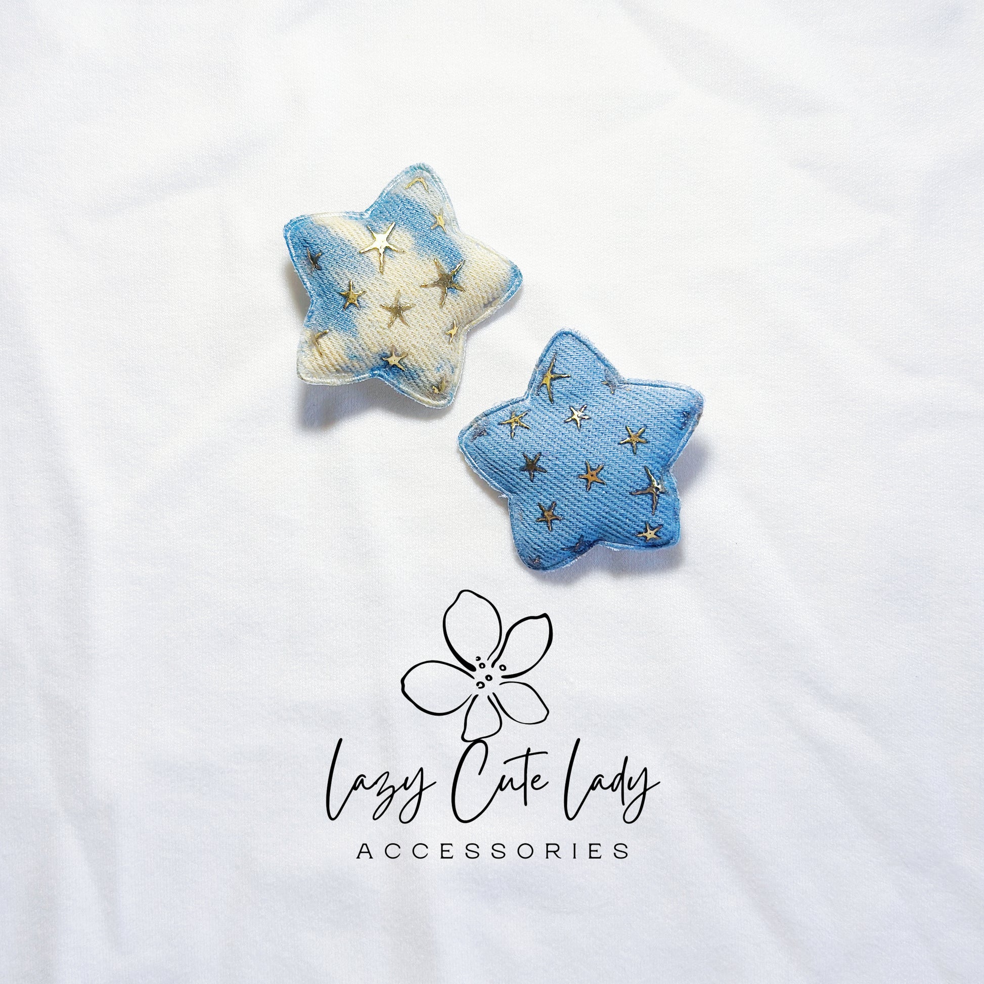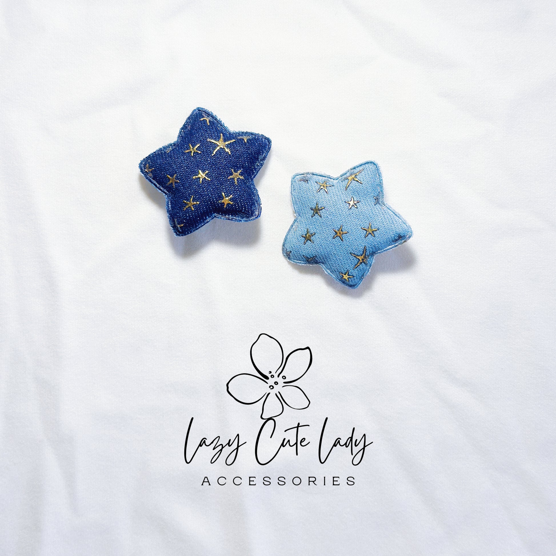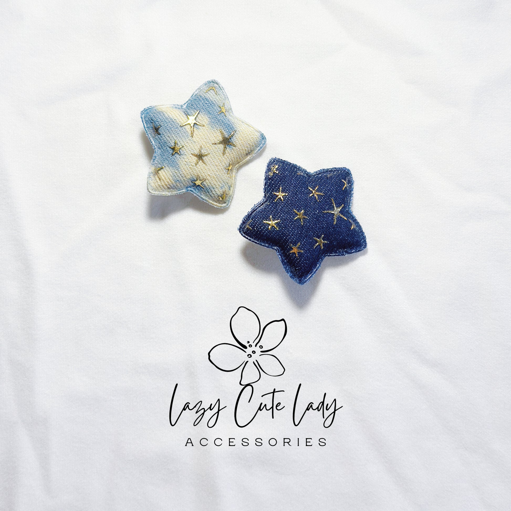Galaxy Star Hair Clips – Denim and Tie-Dye Fabric Stars with Gold Foil Details