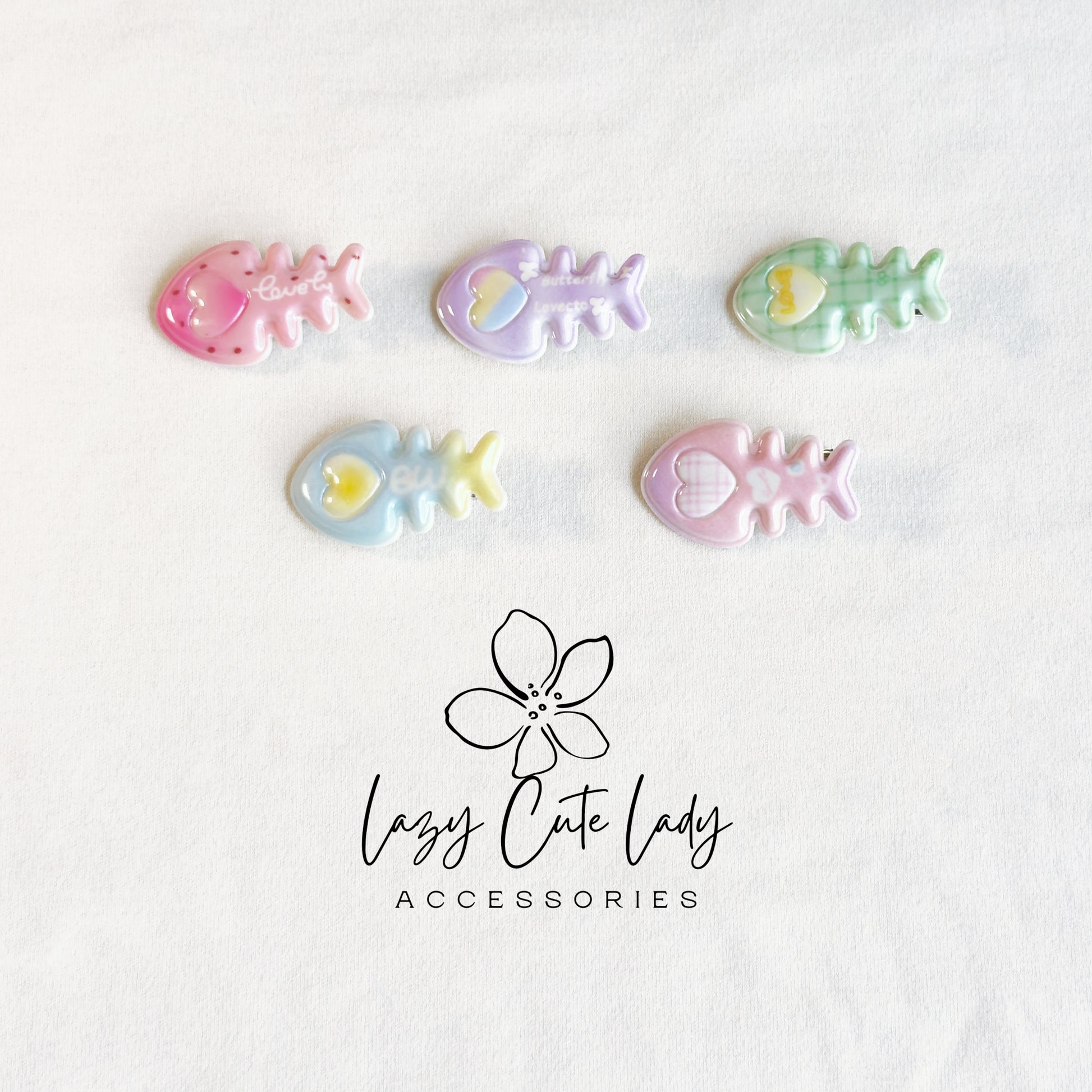 These Glossy Fish Bone Hair Clips are a sweet splash of color and charm! Featuring pastel gradients, heart accents, and fun printed words like “love,” “butter,” and “cute,” they’re the perfect accessory to brighten any hairstyle.