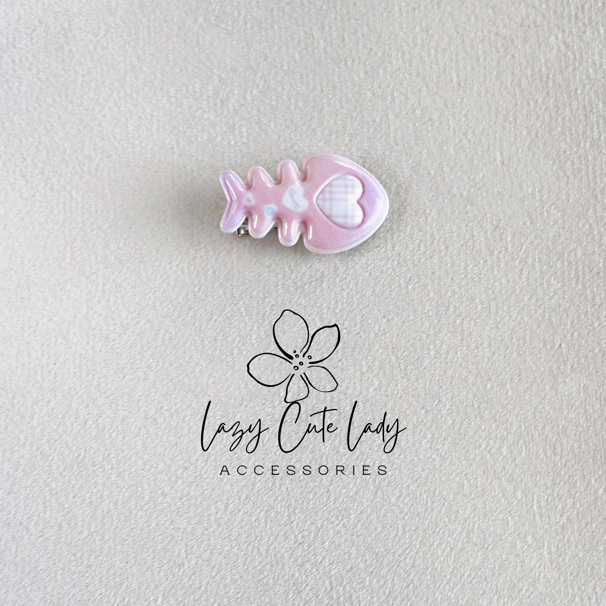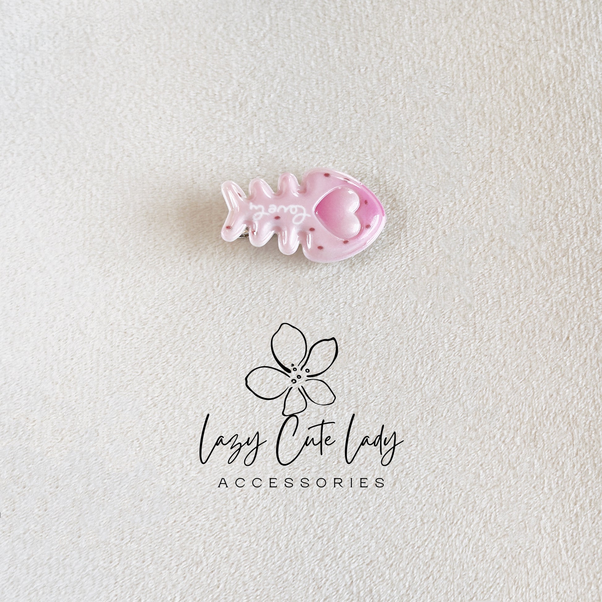 Glossy Pastel Fish Bone Hair Clips – Cute Kawaii Style Barrettes with Heart Details