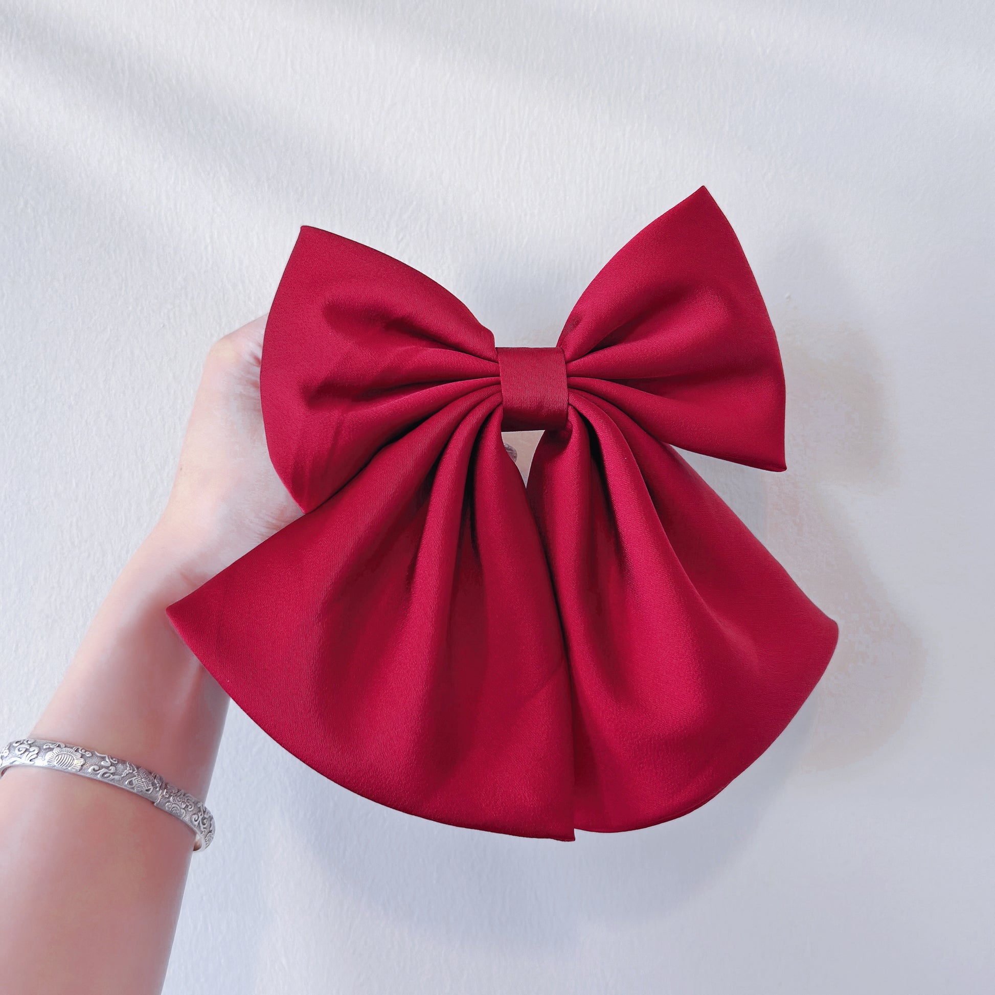 Introducing our Satin Butterfly Bow Hair Clip, a large-sized bow hair accessory designed for ponytail embellishment and versatile styling. This clip combines cuteness, elegance, and a touch of sophistication, making it suitable for various occasions. With a length of 9 inches, it is crafted to complement different hairstyles and is suitable for all age groups. The color options of red and black add versatility, allowing you to match them with various outfits.