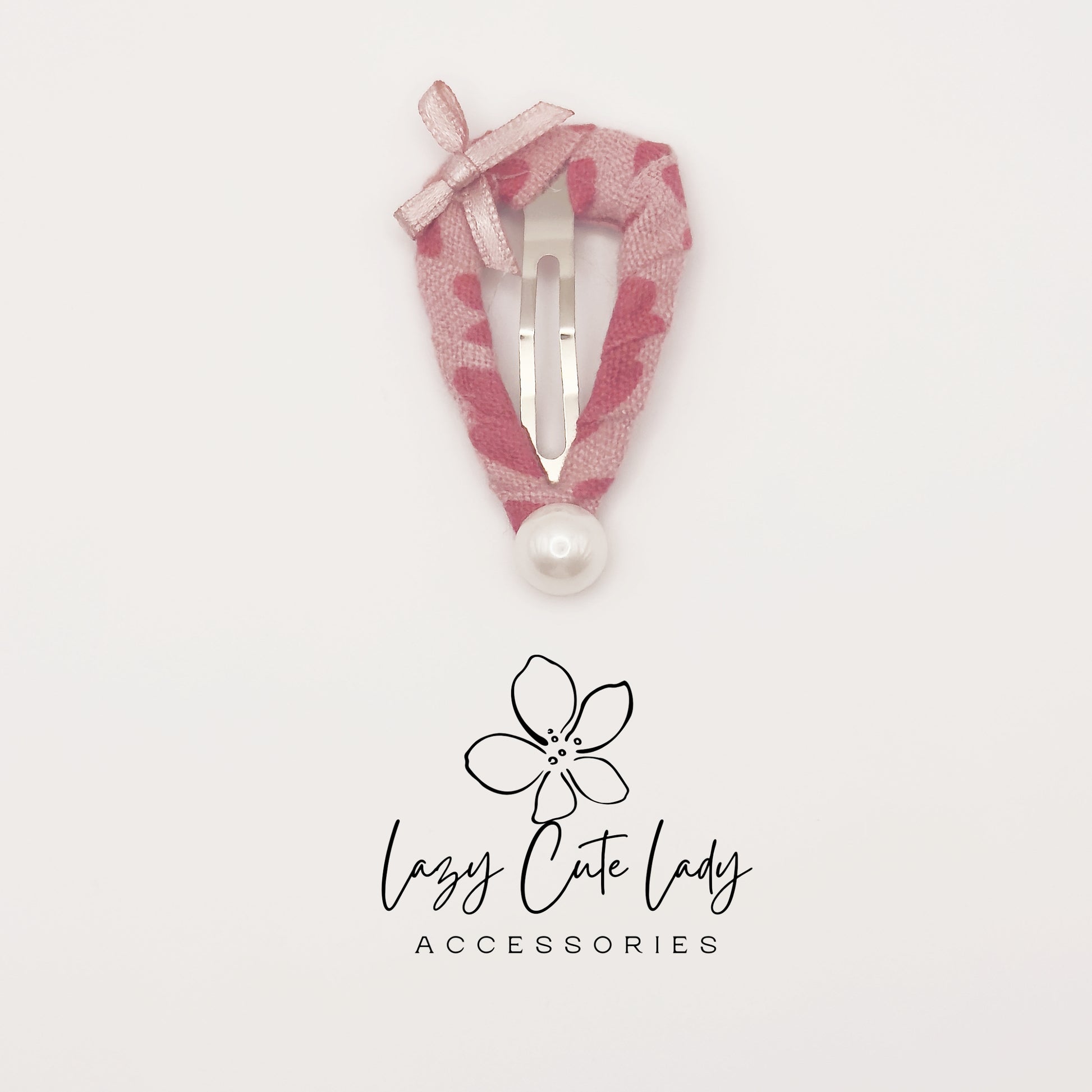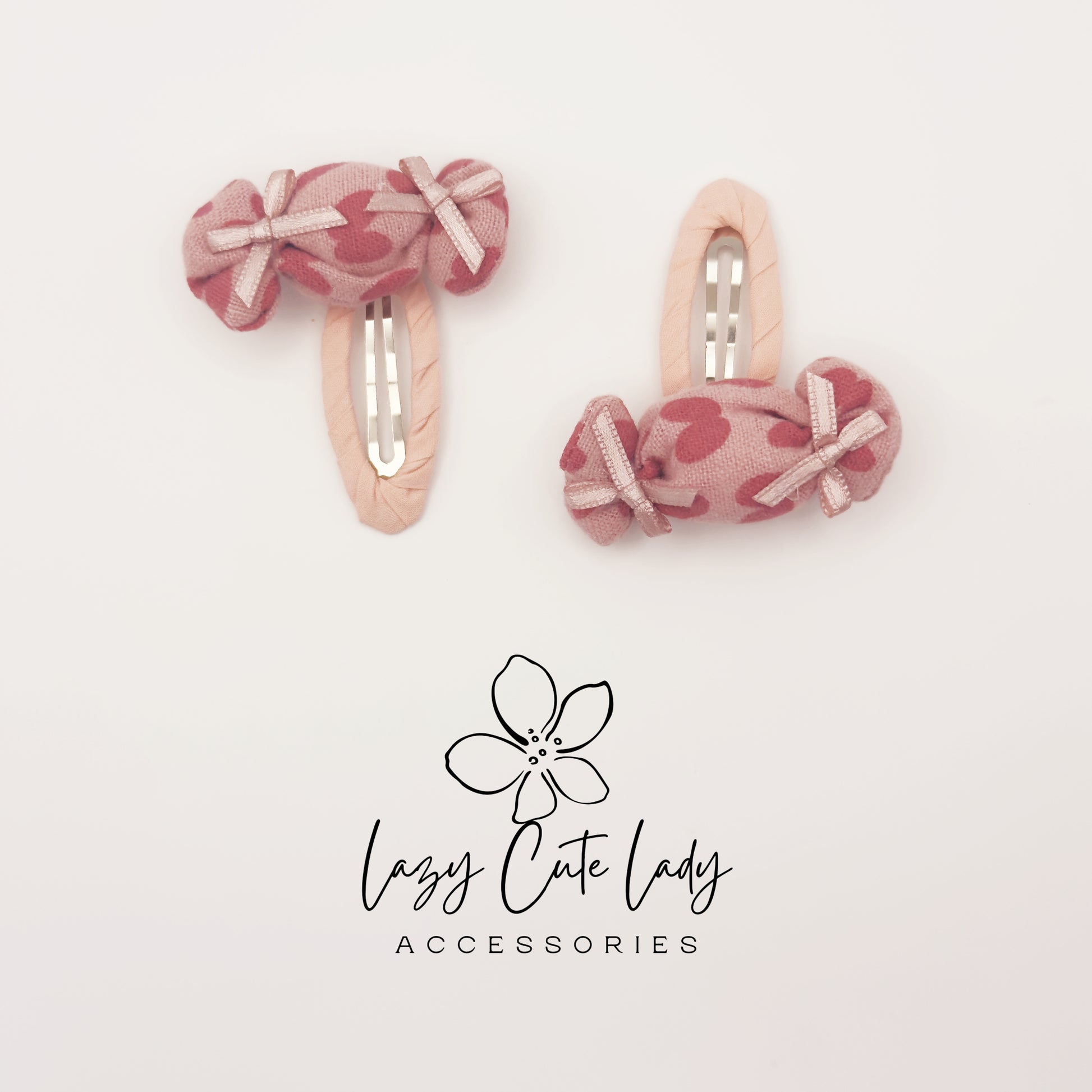 Heart Print Fabric Hair Clips – Cute Bow, Candy & Pearl Snap Barrettes for Girls