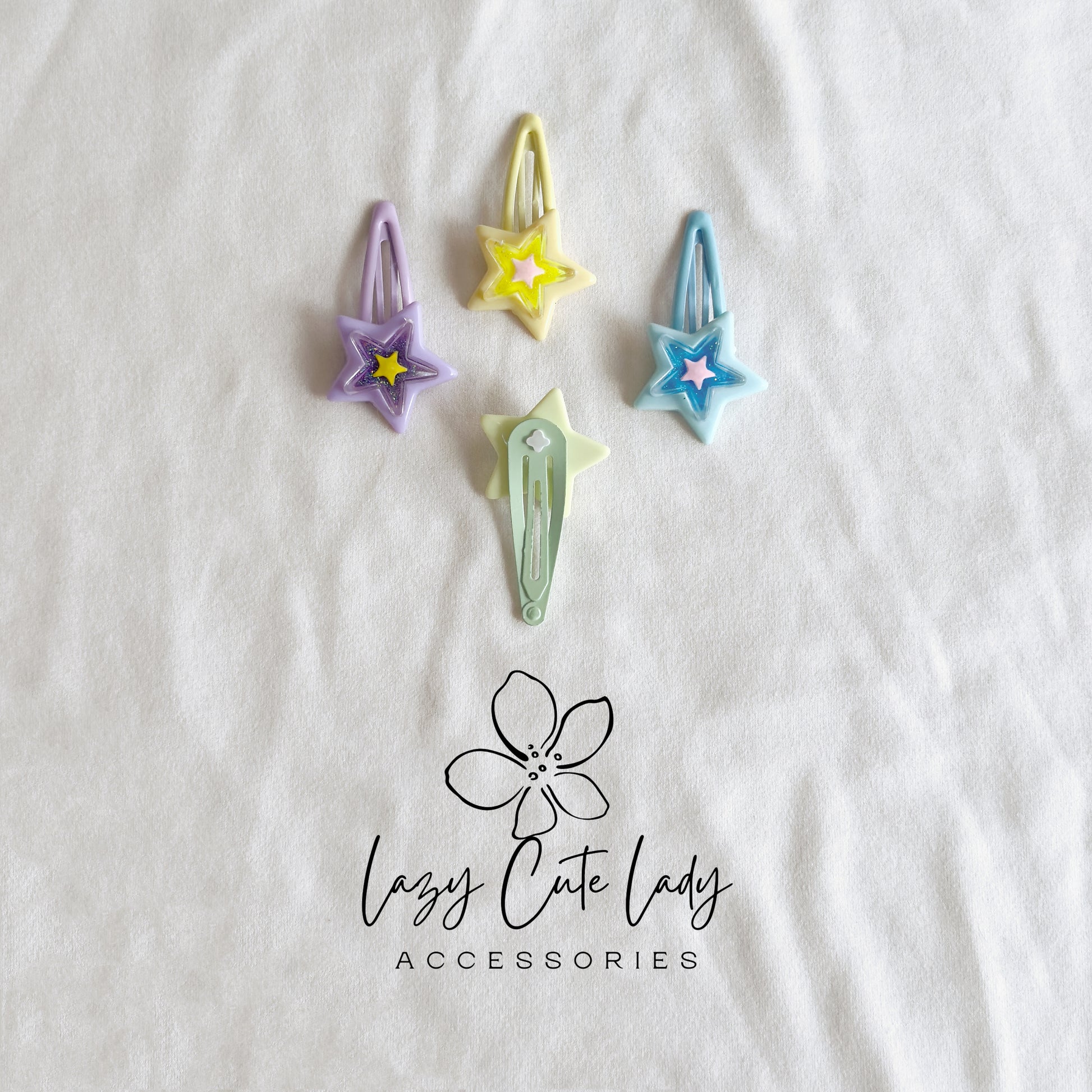 Add a dreamy pop of color to any hairstyle with these layered star snap clips! Each clip features a three-tone star design in bright, cheerful shades — perfect for playful looks and creative mix-and-match styling.