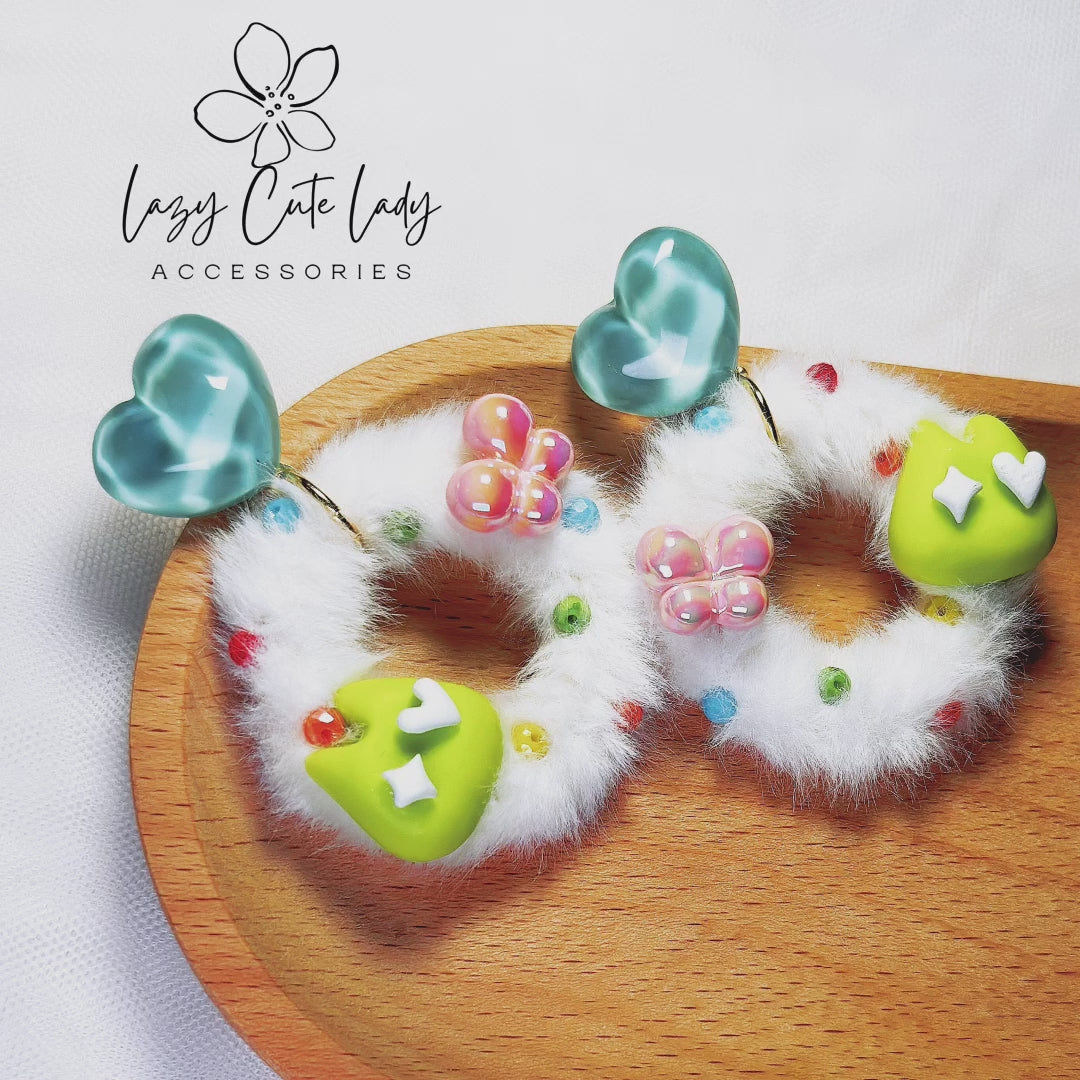 Introducing our Playful Charm handcrafted earrings, adorned with blue hearts, pink butterflies, and adorable cat heads. These fluffy earrings exude cuteness and a mischievous vibe, perfect for adding a playful touch to any outfit. Whether it's a special occasion or daily wear, these earrings are sure to delight with their attention to detail and whimsical design. Ideal for gifting, they're suitable for wearers of all ages, making them a versatile and joyful choice. Experience the delightful charm of our Playful Charm earrings, perfect for spreading smiles wherever you go.