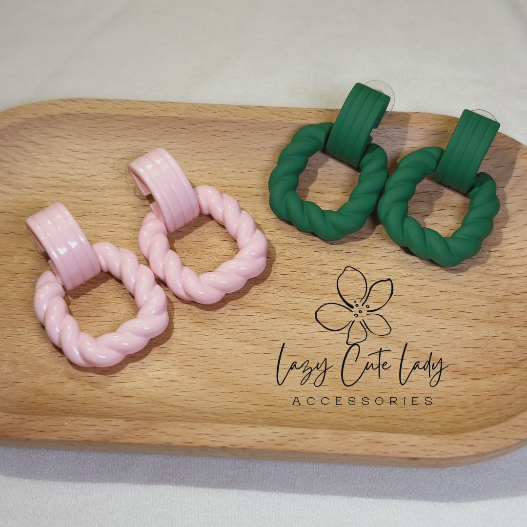 Introducing our Versatile Twist Square Geometric Twisted Earrings, available in two charming color options: pink and matte green. These earrings feature a twisted design reminiscent of braided ropes, adding a touch of vintage charm and simplicity. Their retro yet minimalist design makes them perfect for various occasions and age groups, offering versatility and elegance. These earrings complement a wide range of outfits and styles, making them a stylish and adaptable accessory. Whether it's a casual outing or a special event, these earrings make a statement. Perfect for gifting, they appeal to wearers of all ages, symbolizing both uniqueness and grace. Elevate your accessory collection with our Versatile Twist earrings, perfect for adding a touch of personality to any ensemble.