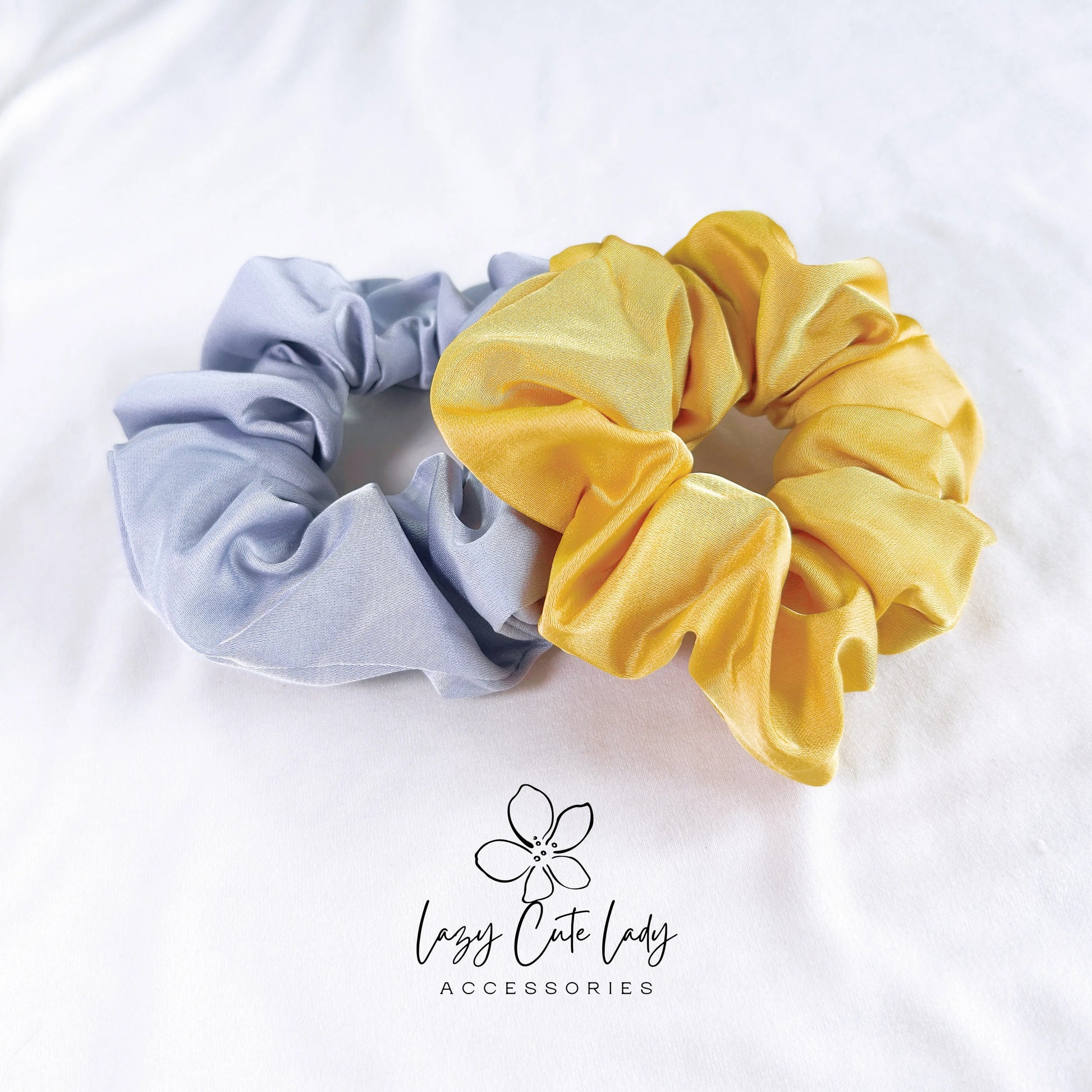 Lovely Satin Elegance French Hair Scrunchies - 4.5 inches (Gray-Blue) - Elevate your hairstyle with these charming scrunchies. The lovely satin material adds a touch of elegance, while the 4.5-inch size is perfect for various hairdos. The serene gray-blue shade complements any outfit.