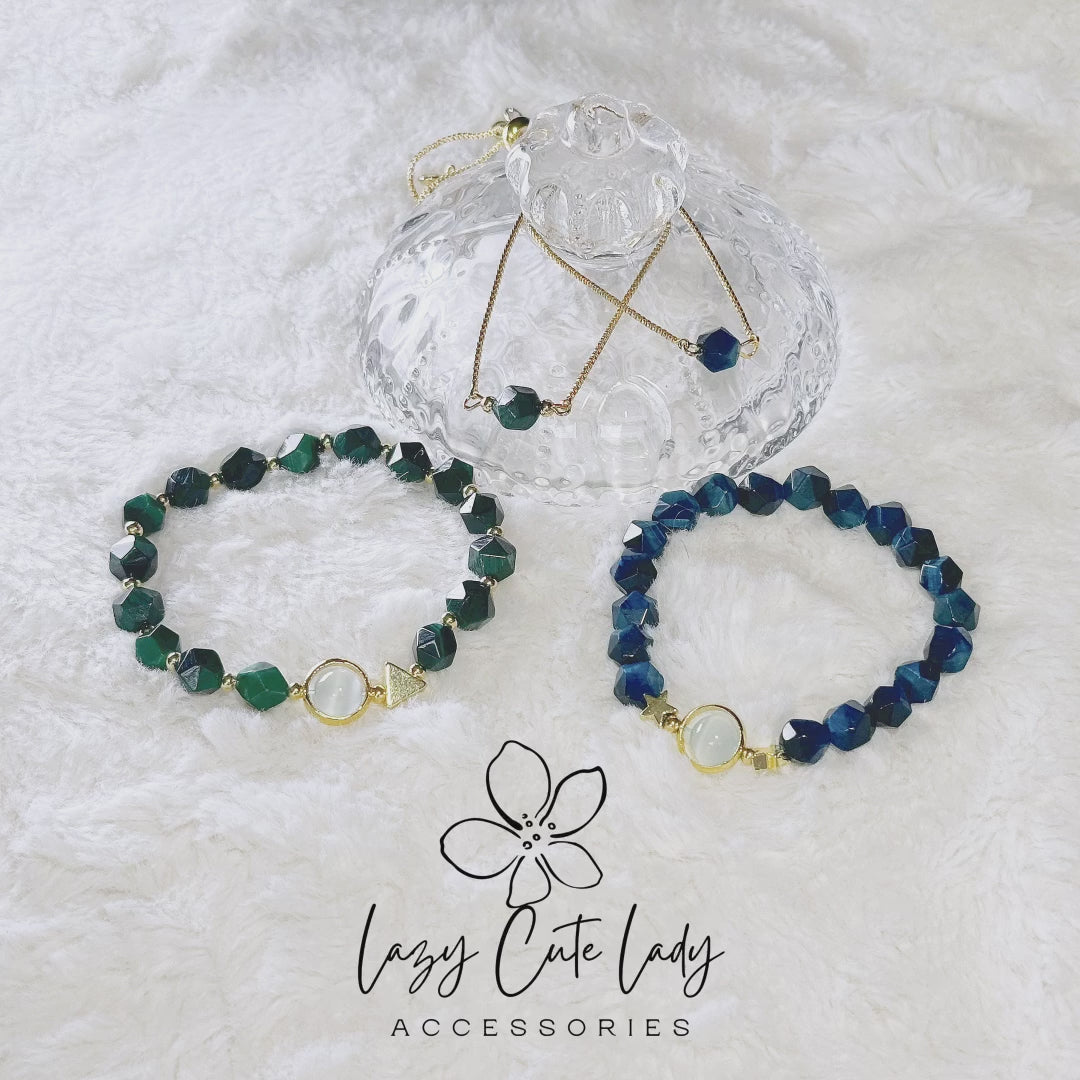 Natural Crystal Bracelet Set - Green and Blue Variants