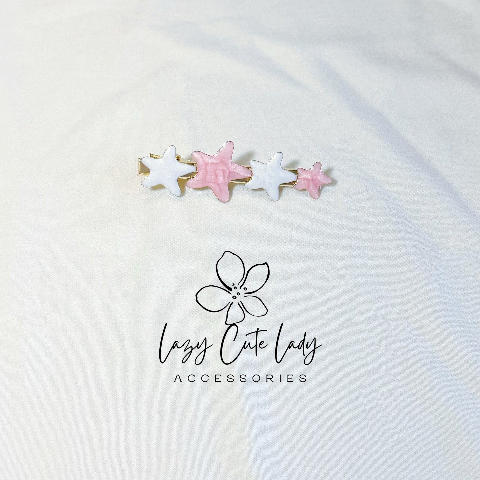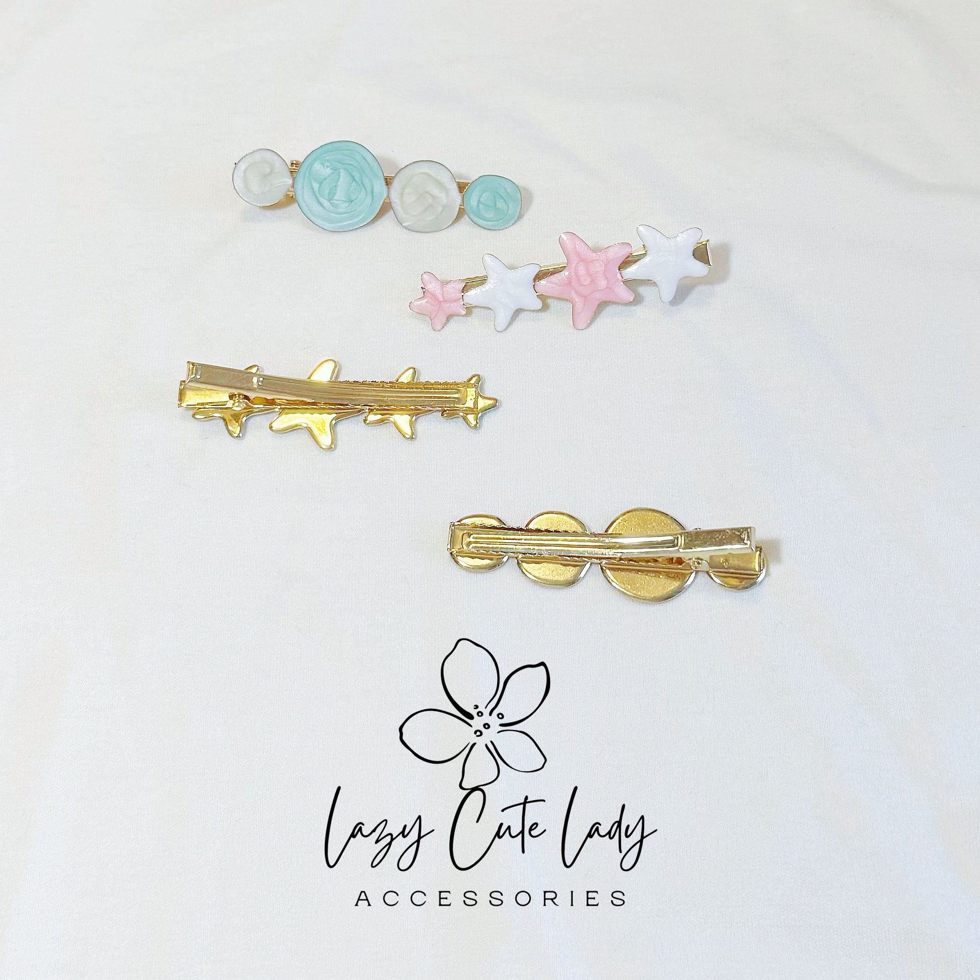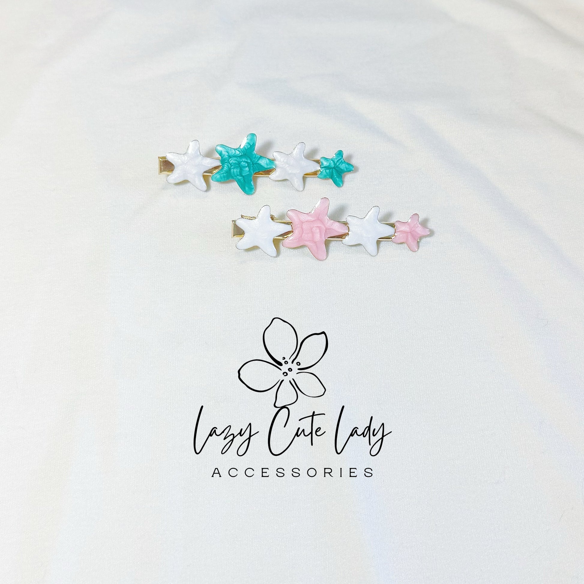 The set includes three charming designs—pastel swirls like tiny sea roses, pearly starfish in pink and aqua, and elegant circle patterns that evoke the serenity of the sea. Whether you're heading to the beach, a brunch date, a festival, or just brightening your everyday outfit, these clips are effortlessly versatile and perfect for all ages.