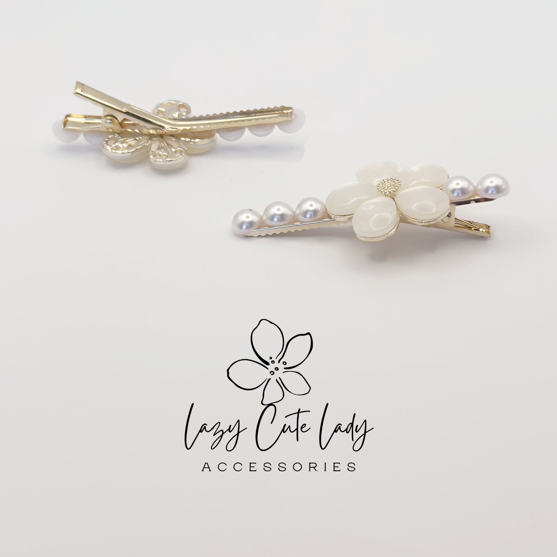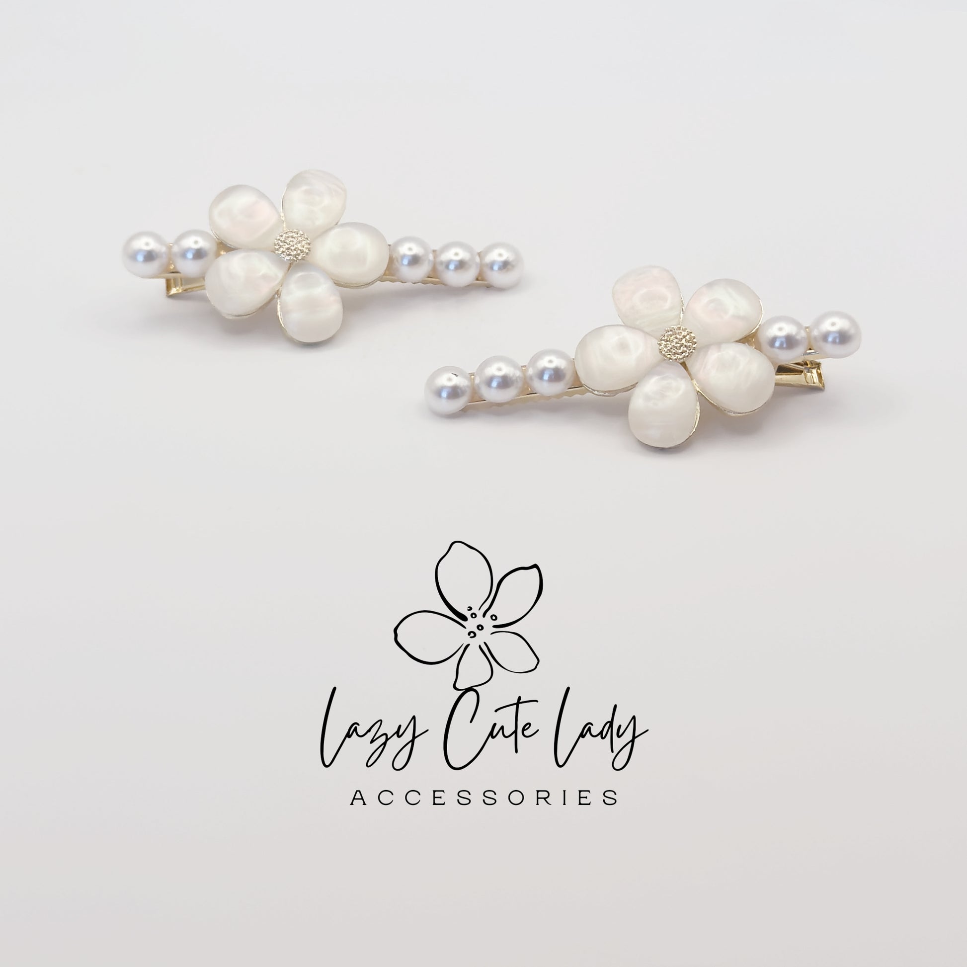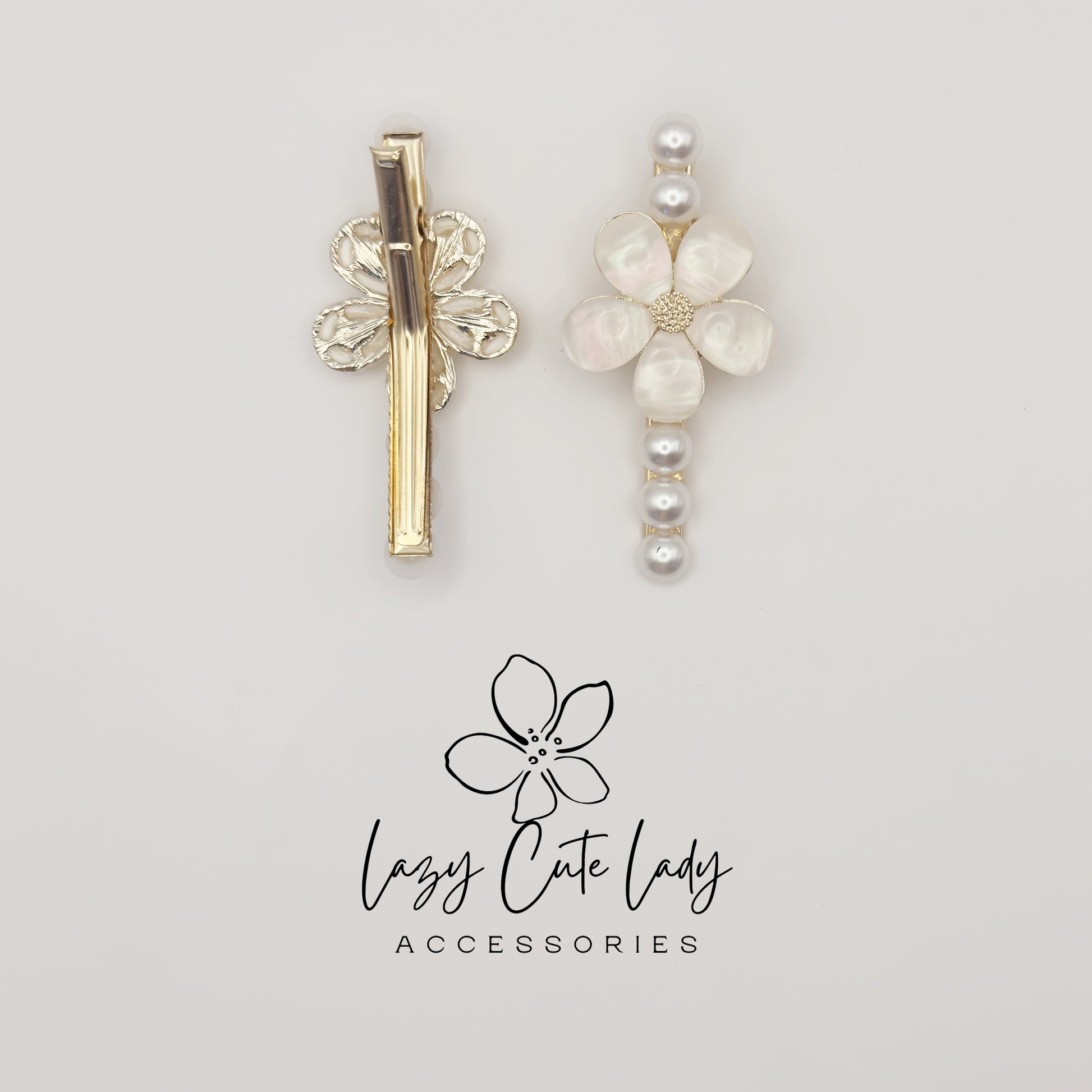 ✨ Elevate your hairstyle with this elegant set of pearl and shell flower hair clips. One clip features a delicate five-petal shell flower with pearl accents, while the other has a matching gold-tone floral design. Together, they create a sophisticated and timeless look for weddings, parties, or everyday elegance.