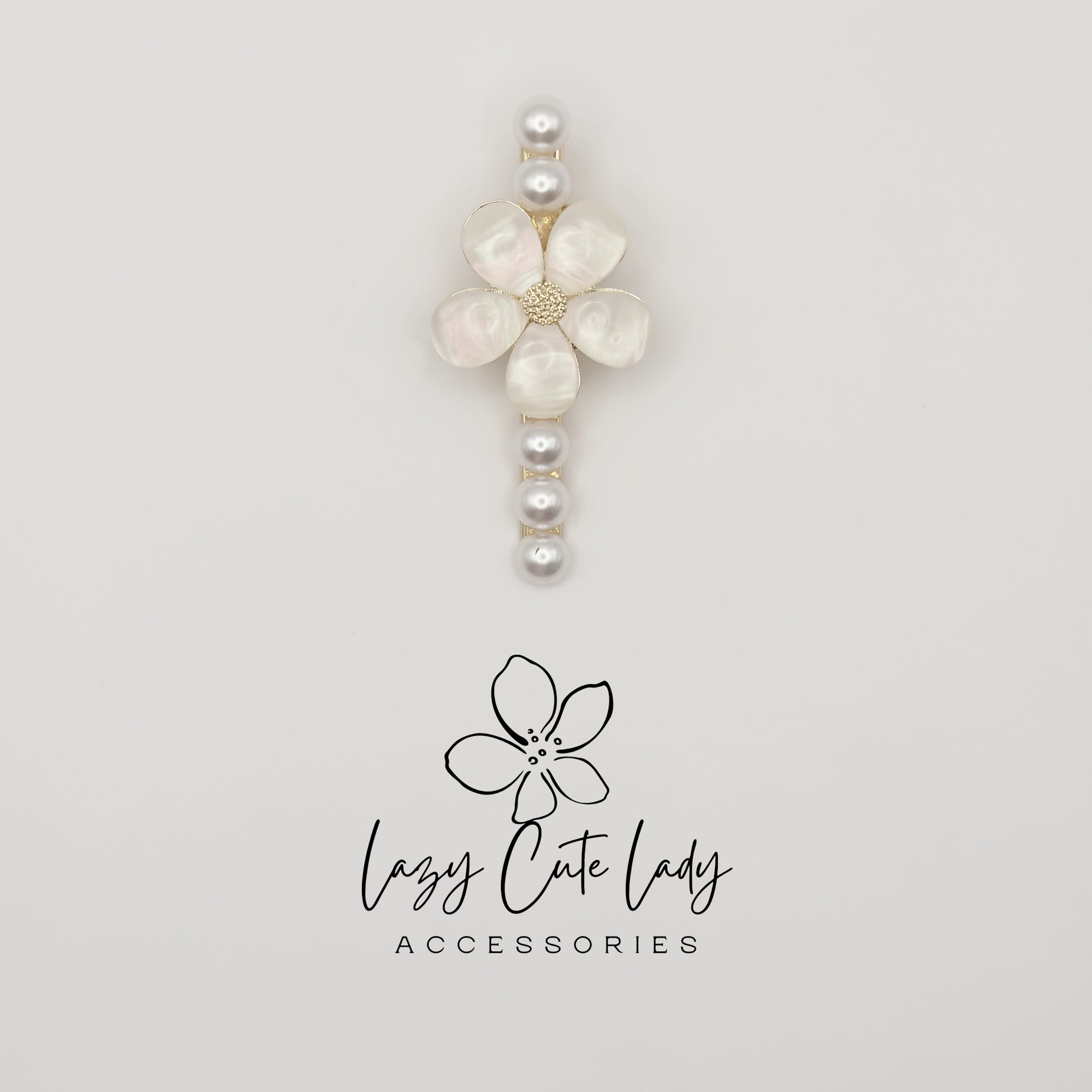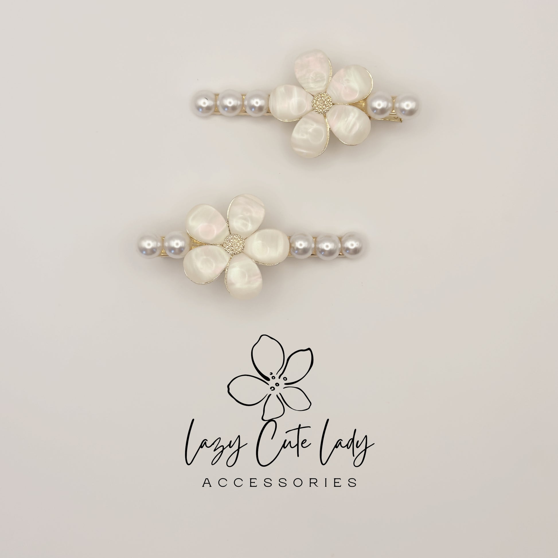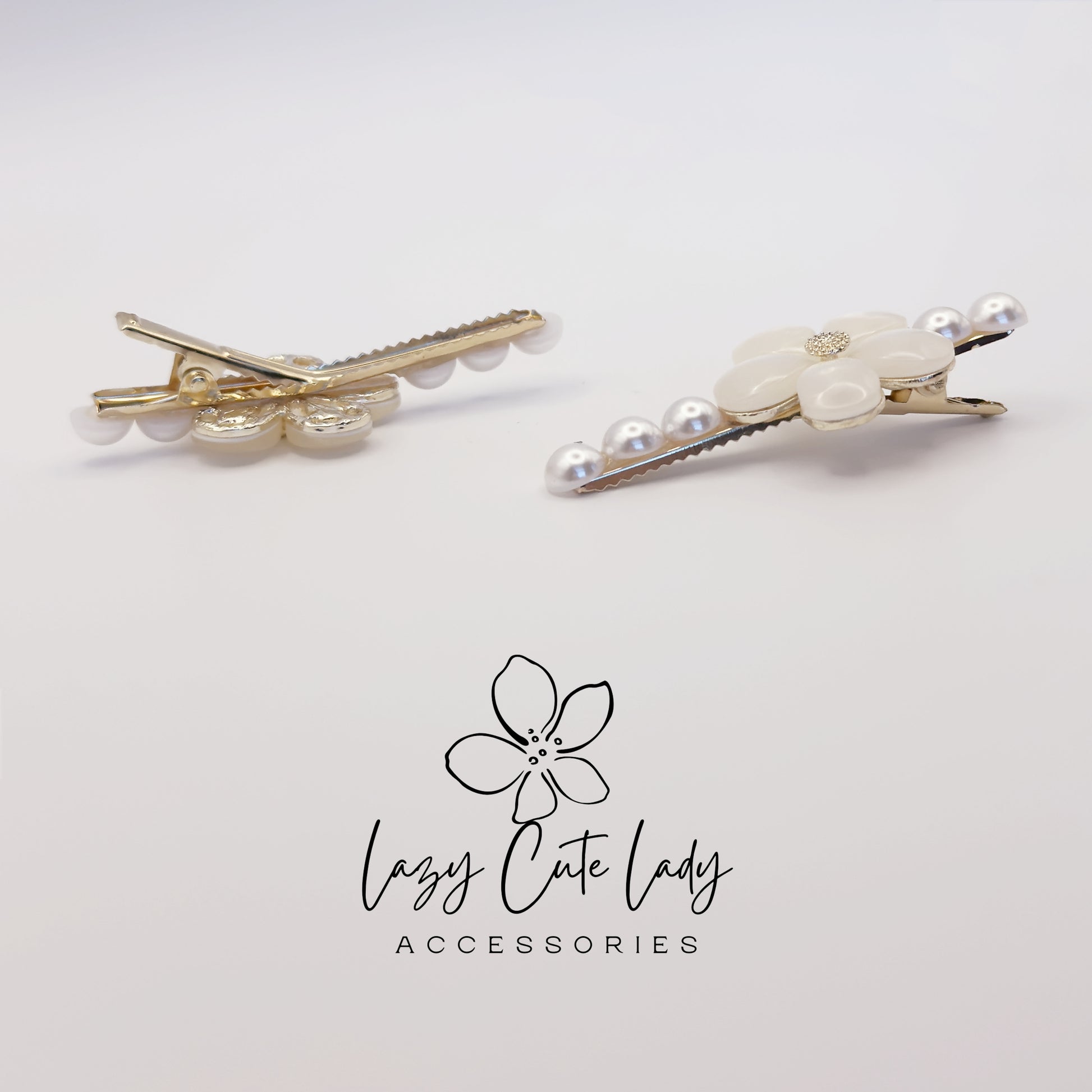 ✨ Elevate your hairstyle with this elegant set of pearl and shell flower hair clips. One clip features a delicate five-petal shell flower with pearl accents, while the other has a matching gold-tone floral design. Together, they create a sophisticated and timeless look for weddings, parties, or everyday elegance.