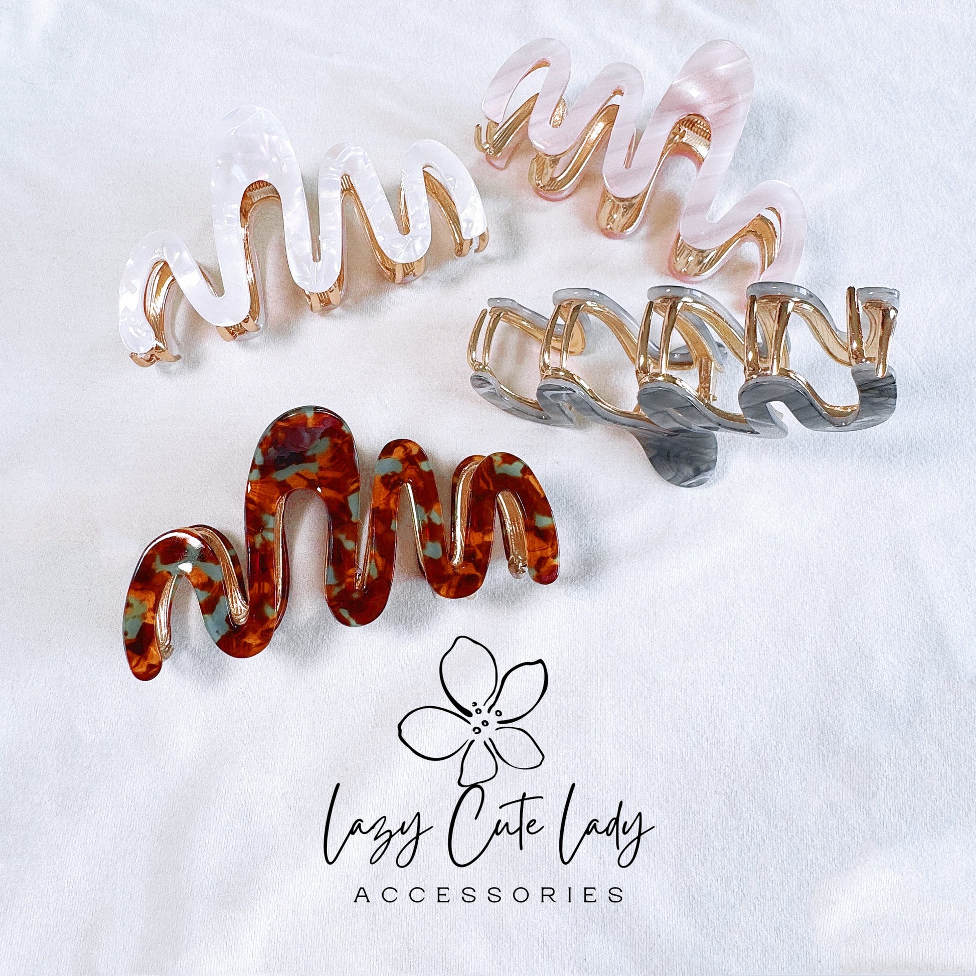 Elevate your style with the Ribbon-Inspired Acetate & Metal Hair Claw, a stunning accessory that blends eco-friendly acetate with sleek metal detailing. Designed to mimic the soft curves of a silk ribbon, this hair claw adds a touch of elegance and sweetness to any look. Available in five sophisticated colors—soft green, white, brown, pink, and gray—it complements various hairstyles and occasions with ease.