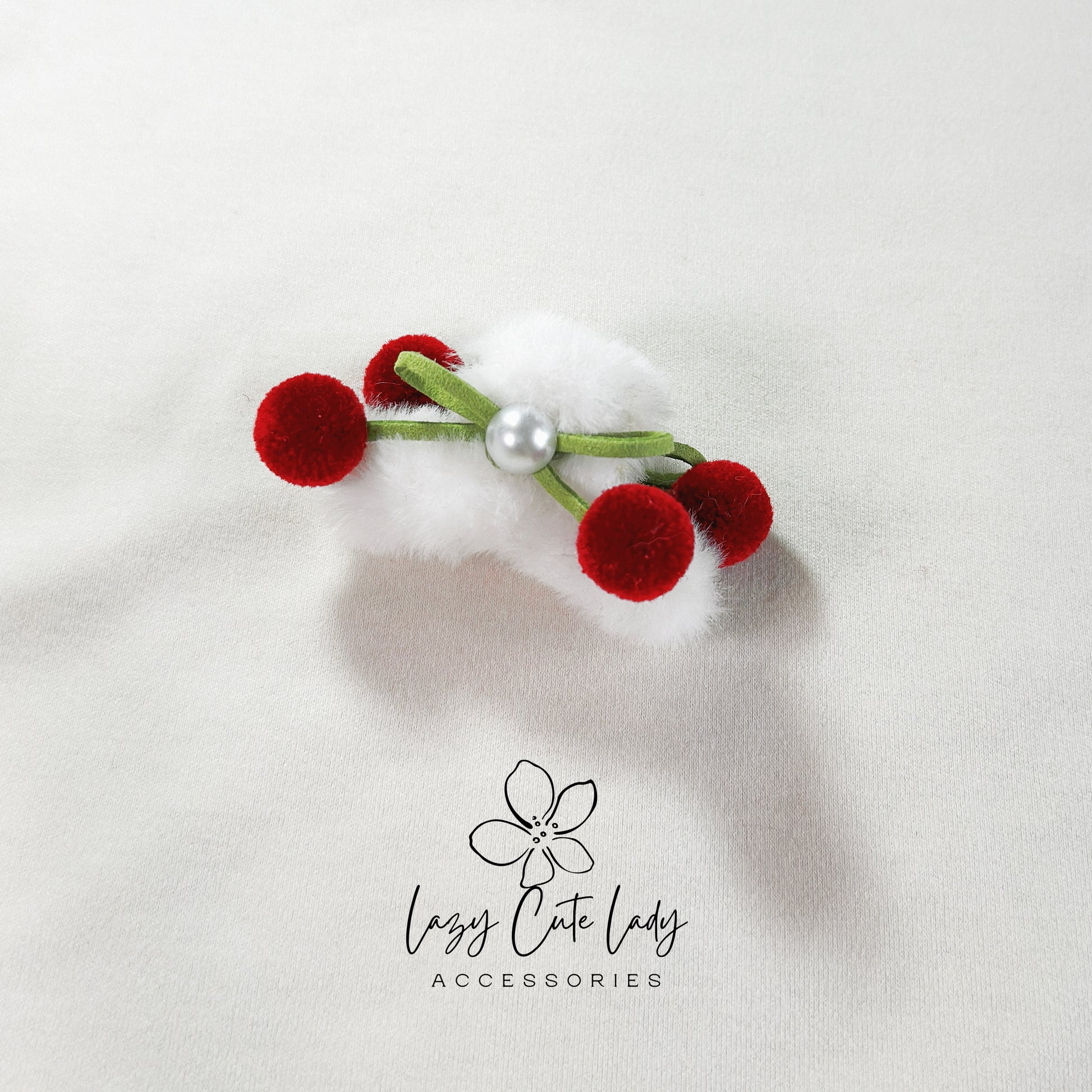 - The combination of the plush texture, bow, and red fuzzy ball creates a delightful and cute accessory.