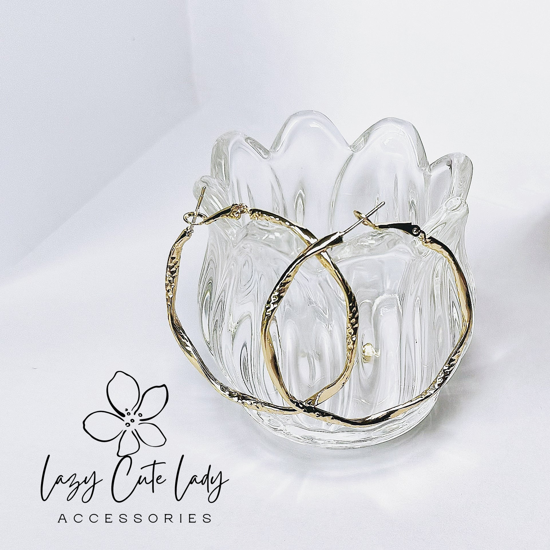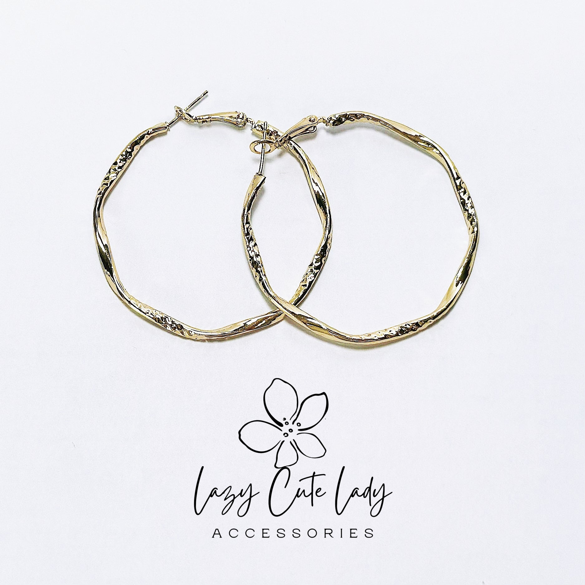 Textured Gold Metal Hoop Earrings - Versatile and Elegant
