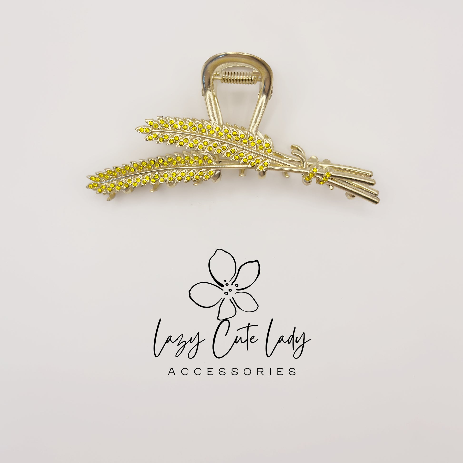 🌾 Yellow Wheat Hair Claw with Rhinestones