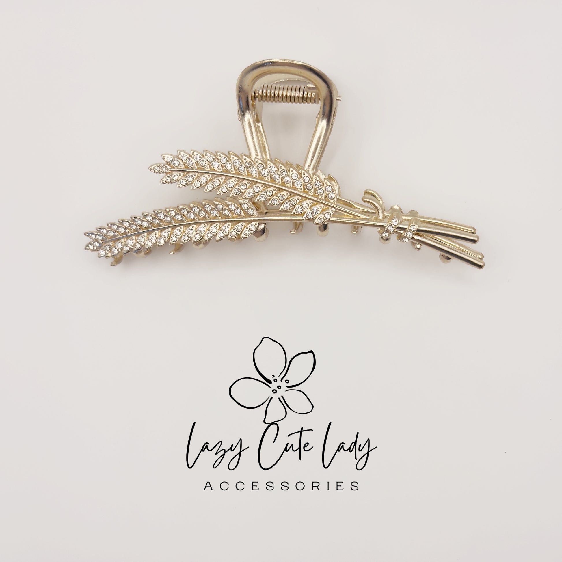 Wheat Hair Claw Clip – Elegant Metal Rhinestone Hair Accessories for Women, Wedding &Party Barrettes