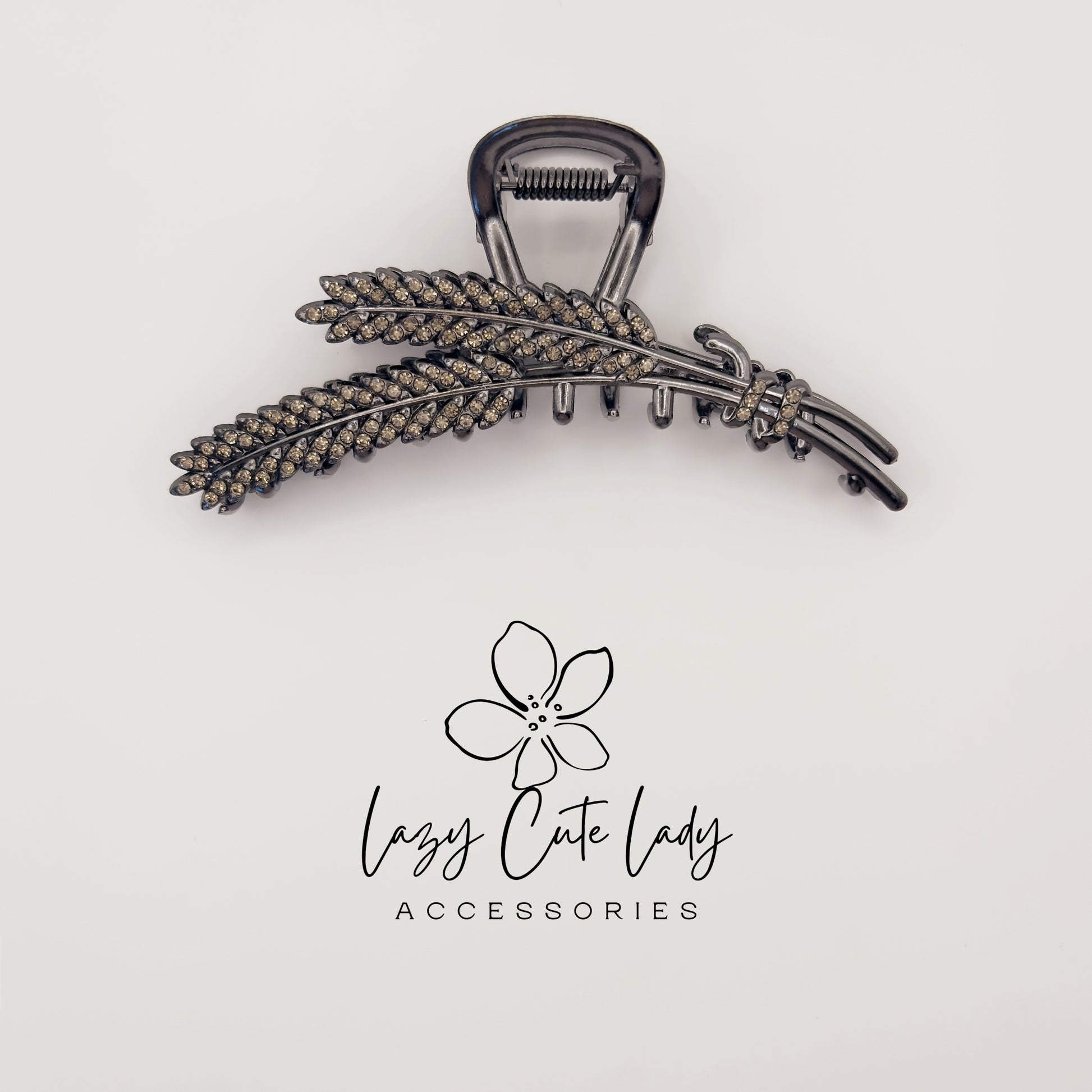 🌾 Silver Wheat Hair Claw with Rhinestones
